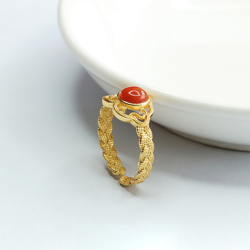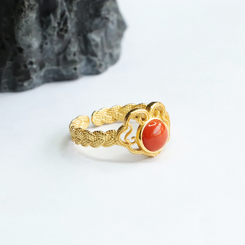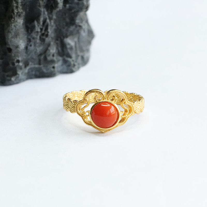S925 Серебряный набор Южный Красный Агат Сянюнь кольцо (MN3030804)