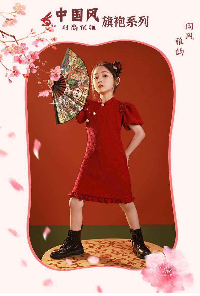 Летнее платье для девочек Cheongsam Летнее платье ретро платье принцессы новый китайский стиль красное детское платье для девочек