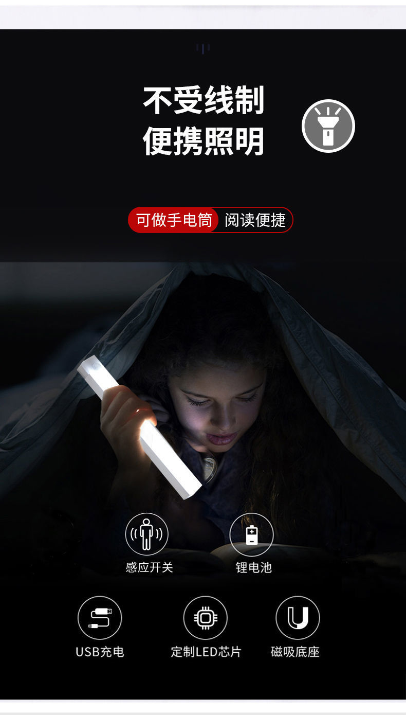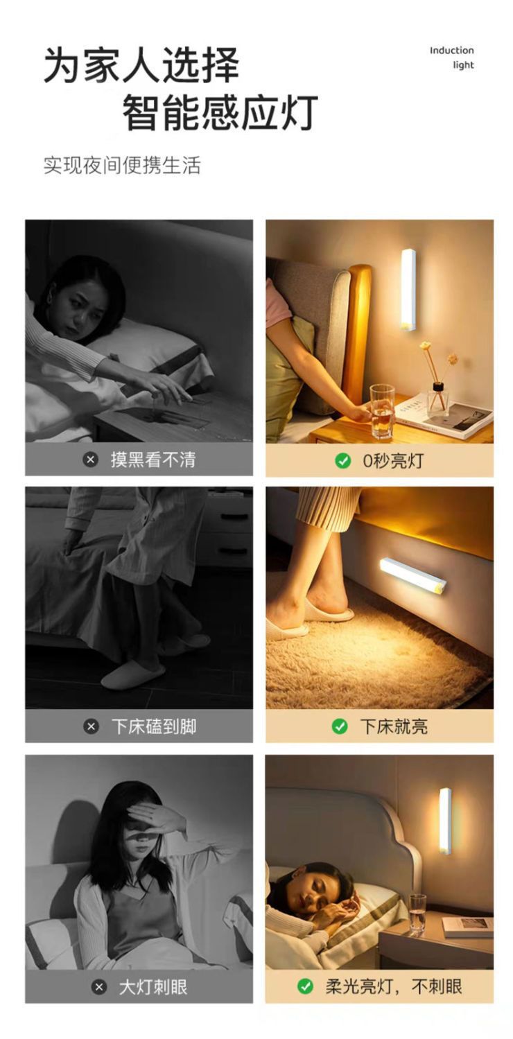 Светодиодный умный человек индукционный магнитный насасывающий длинный беспроводной ночной свет зарядный шкаф шкаф шкаф винный шкаф для спальни