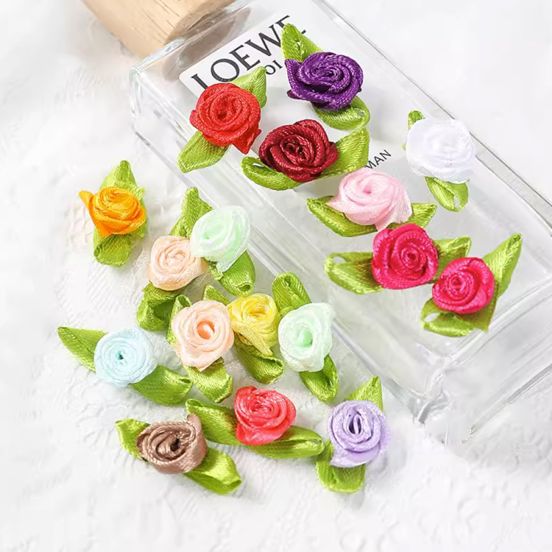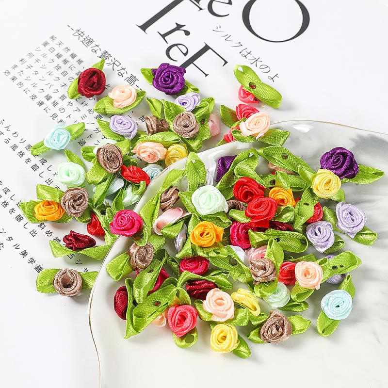 Пятно зеленые листья розы ручной работы маленькие цветы цветная шелковая лента одежда нижнее белье украшения подарочная коробка для упаковки DIY аксессуары