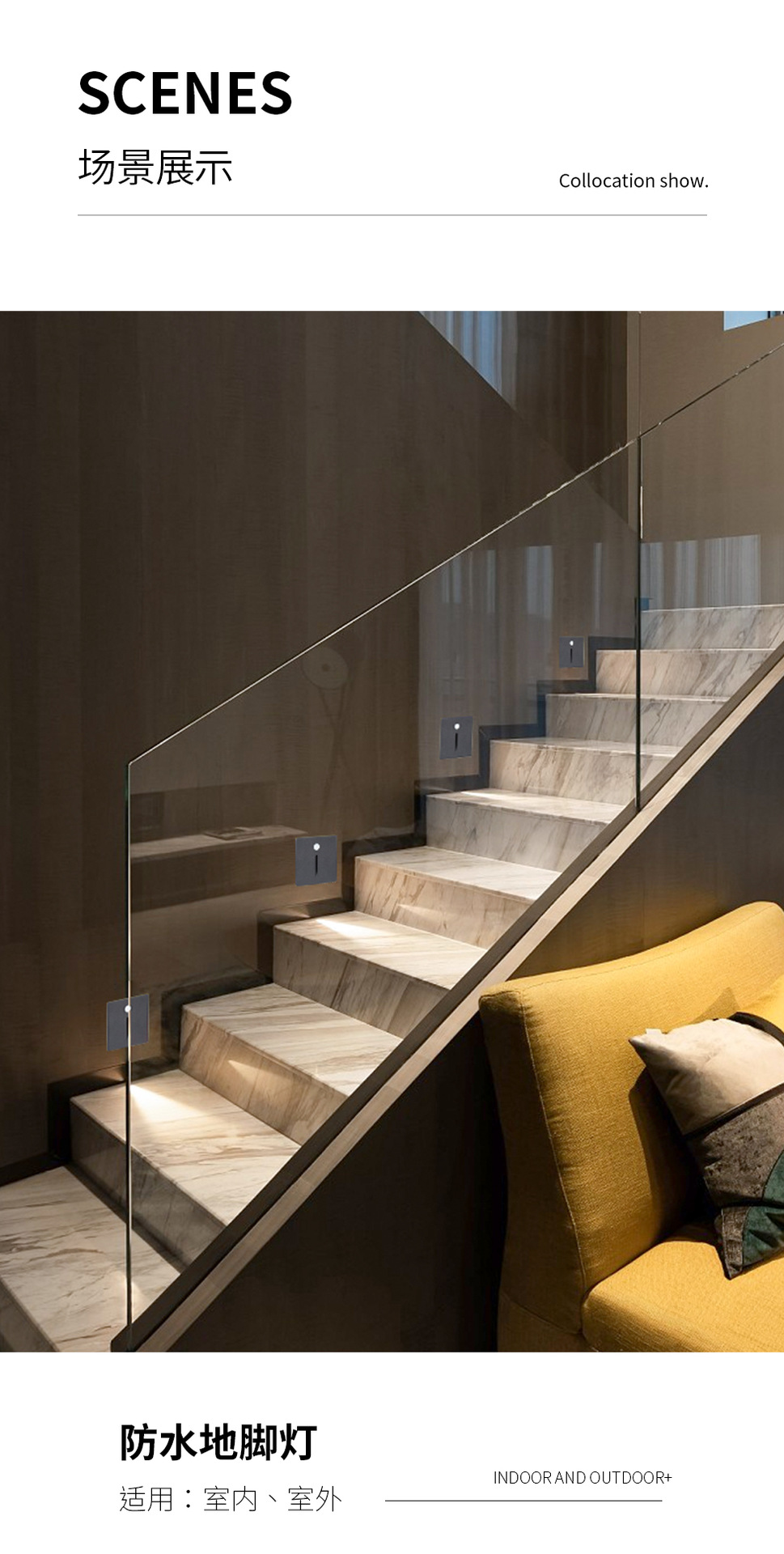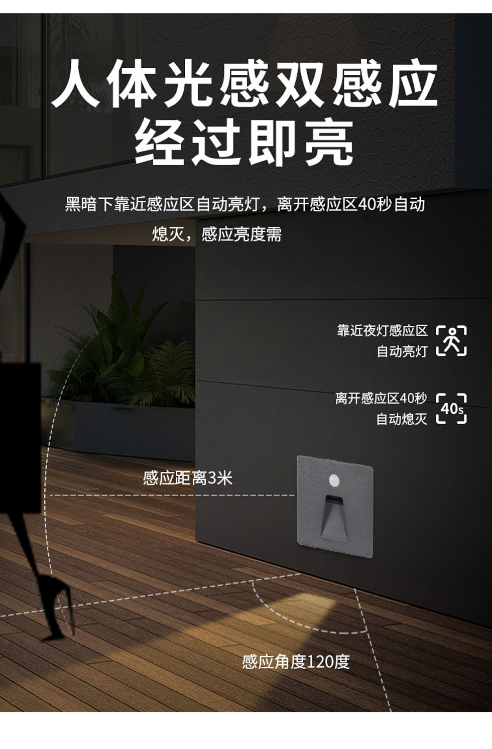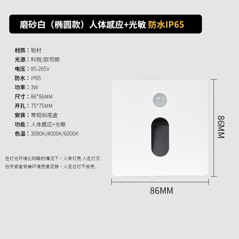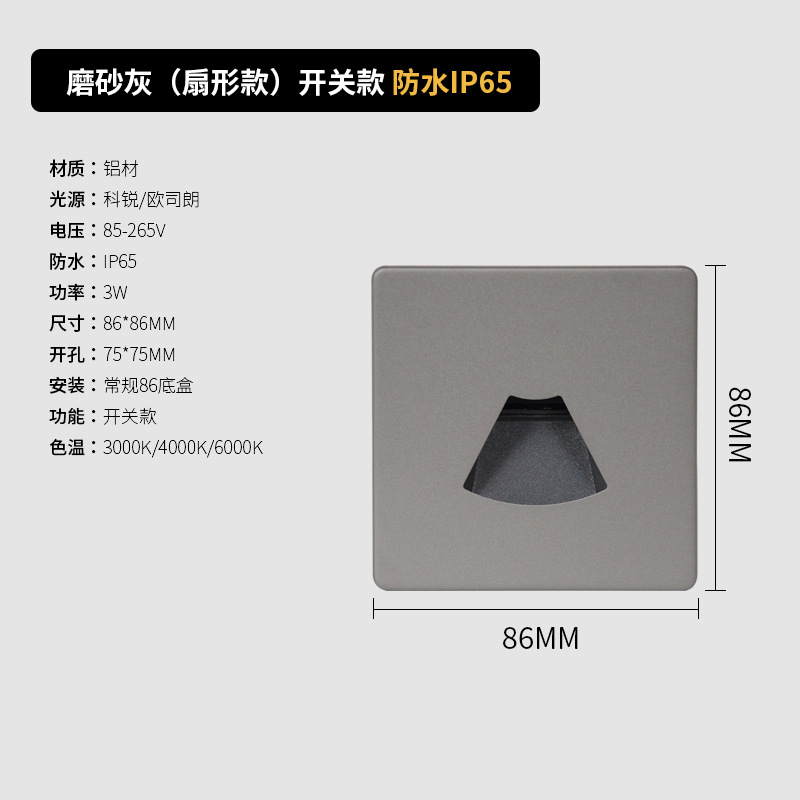 Наружный магнитный водонепроницаемый ножной светильник 86 с датчиком движения, светодиодный врезной светильник для угловых лестничных ступенек, тип 86 для наружного использования.