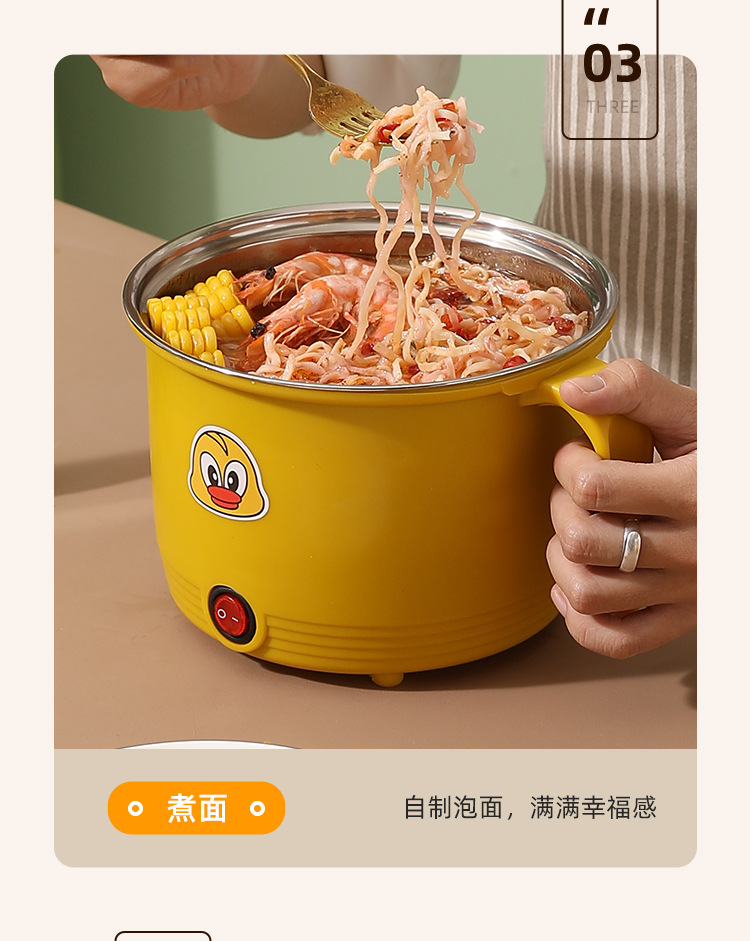 Многофункциональный мини-электрический горячий горшок из нержавеющей стали с одной ручкой для общежития портативный бытовой горшок для лапши оптом маленькая Желтая утка электрическая плита