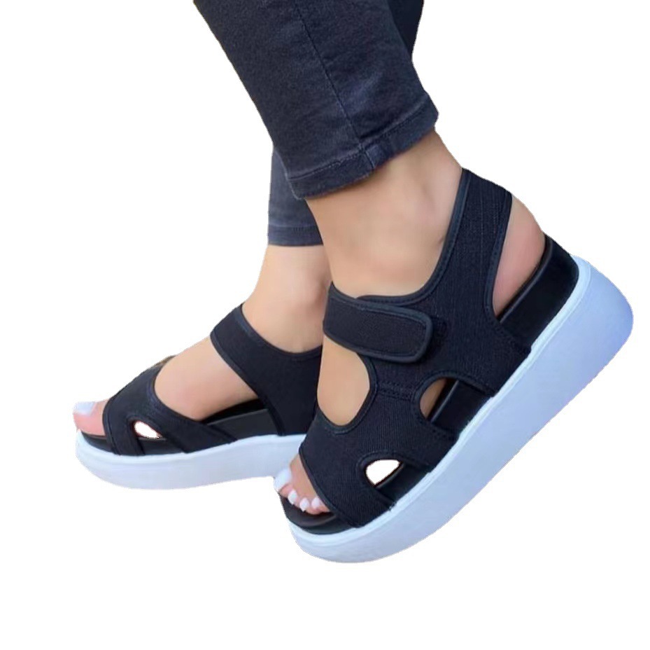 Трансграничные сандалии на танкетке больших размеров на толстой подошве, летние новые европейские и американские пляжные туфли на толстой подошве, спортивные сандалии с цветным принтом