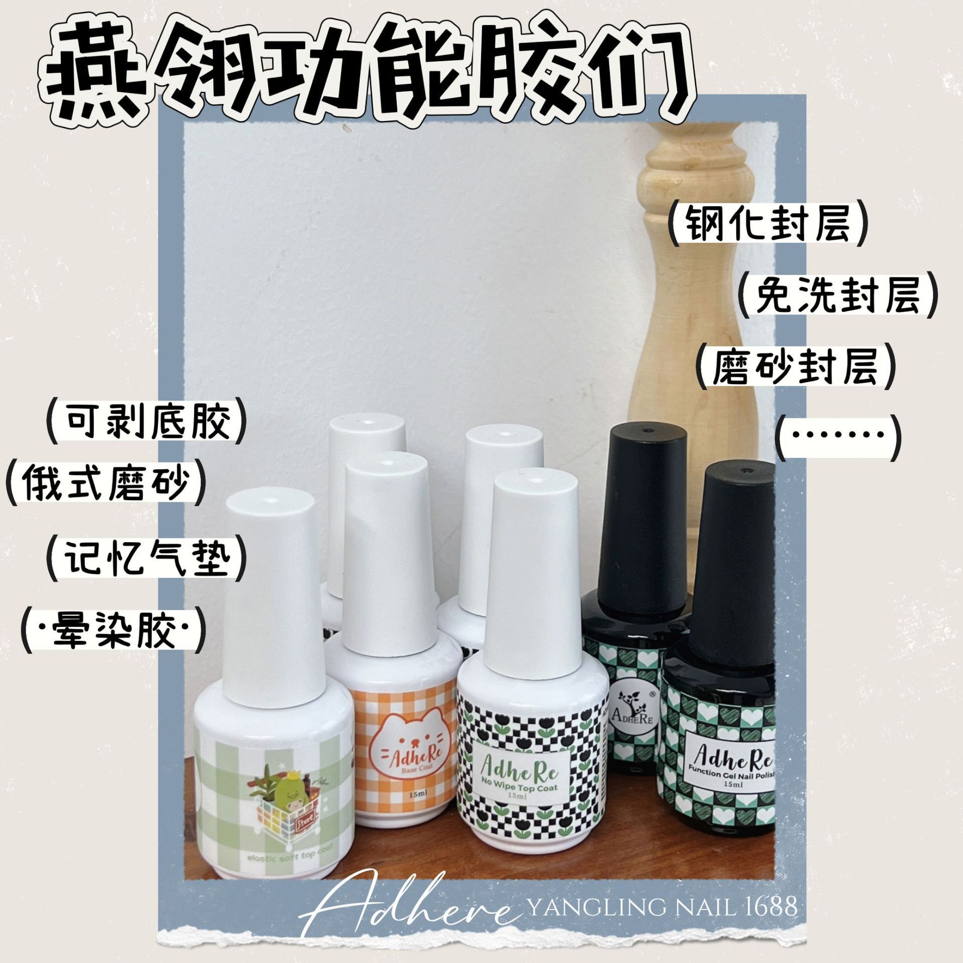 Выглянный слой без мойки; Высокое закаленное уплотнение; Очищение грунтовки; Русский матовый слой; Клеи для ногтей; Клей для окрашивания; Матовый уплотнительный слой; Носить мягкий слой для ногтей; Клей для уплотнения ледяной луны