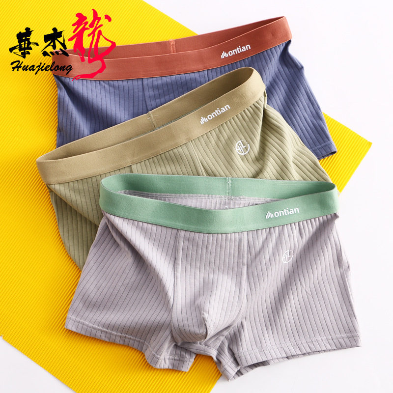 Мужское нижнее белье Hua Jielong Direct, однотонное хлопковое белье, Модные дышащие боксеры со средней талией, оптом
