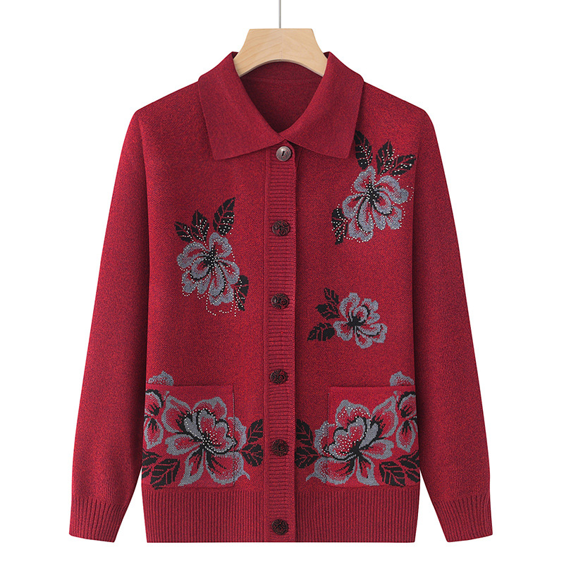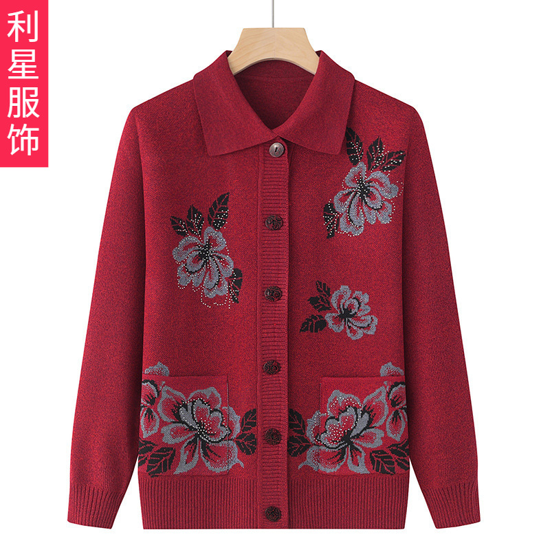 Свитер для среднего и пожилого возраста, Женский Тонкий Свободный кардиган для мамы, весна и осень, красный кардиган для старой леди, бабушки, весеннее пальто для старика