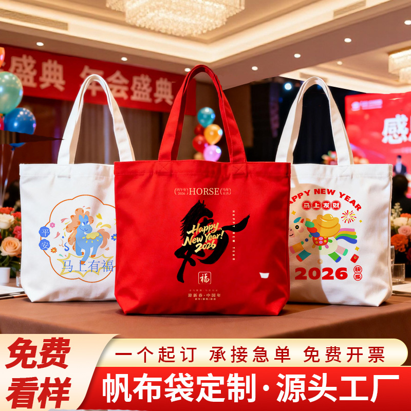 Холщовая сумка 2026 Год Лошади, на весеннее праздничное мероприятие, с корпоративным логотипом на заказ, сувенир для ежегодной встречи, вместительная подарочная сумка для клиентов