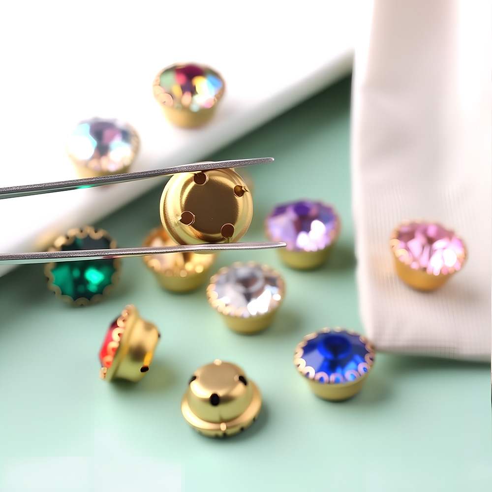 Акриловая круглая пряжка ручной работы с золотым основанием, инкрустированная стразами, для свадебных платьев, сценических костюмов, аксессуаров, деталей для рукоделия