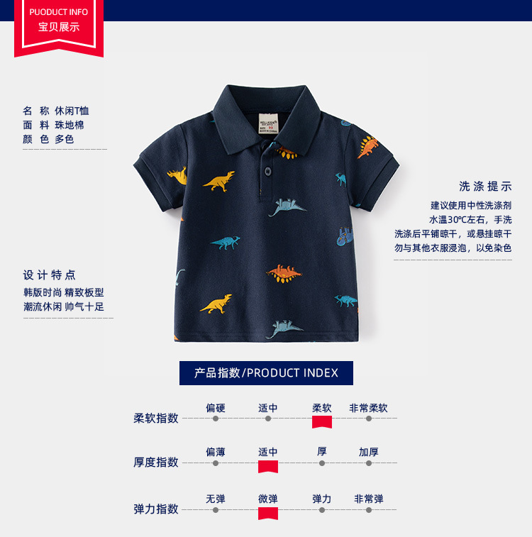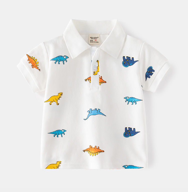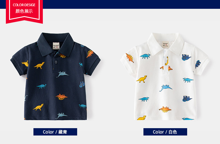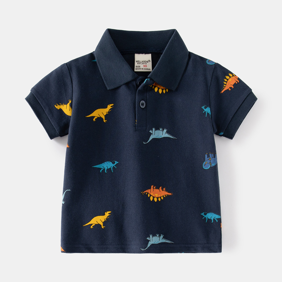Летняя новая рубашка-поло для мальчиков с принтом динозавров, темно-синяя повседневная детская хлопковая с коротким рукавом и лацканами