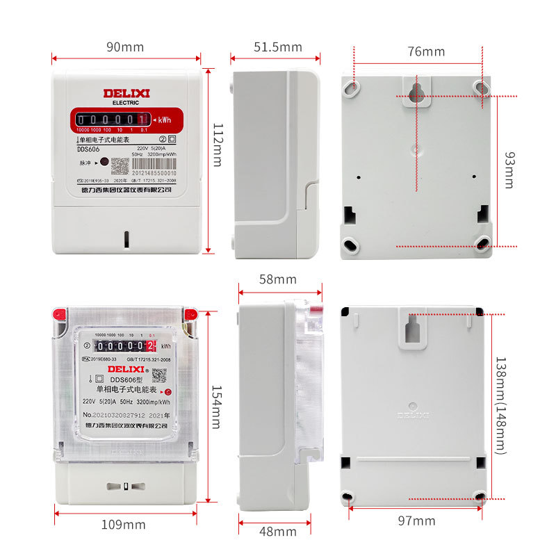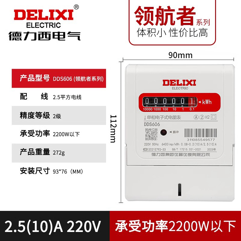 Delixi DDS606 высокоточный электронный однофазный Электрический счетчик бытовой электроэнергии 6A10A20A40A, арендный корпус