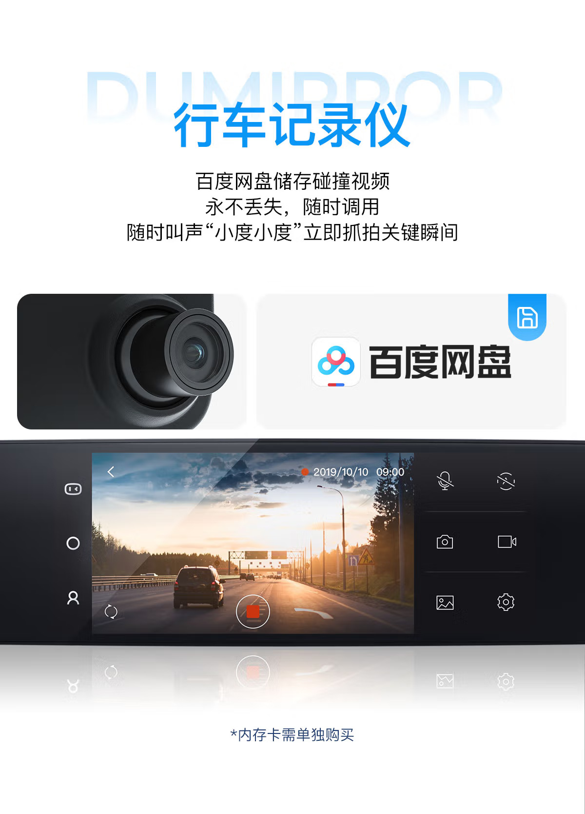 Интеллектуальное зеркало заднего вида автомобиля за рулем рекордера