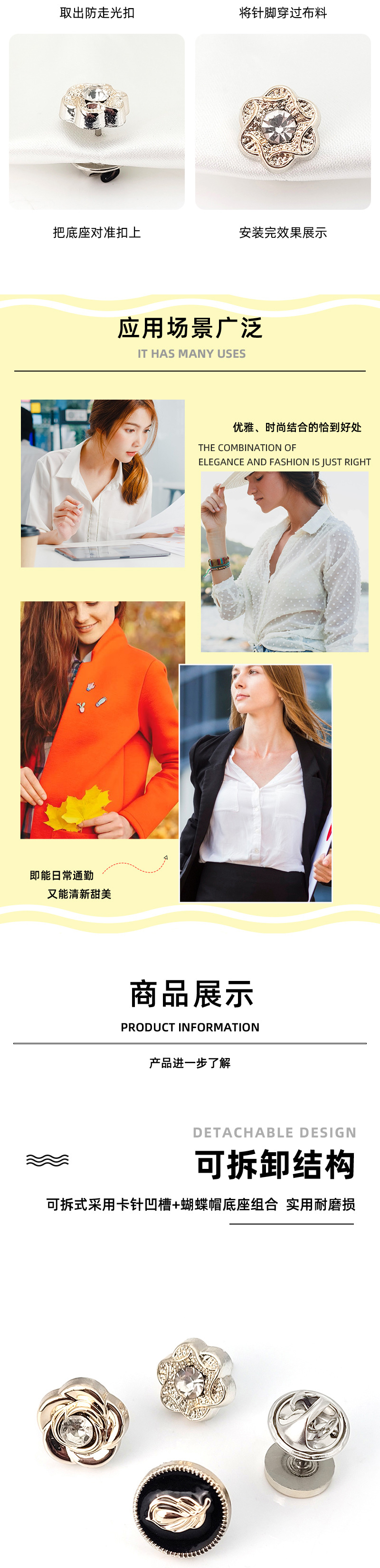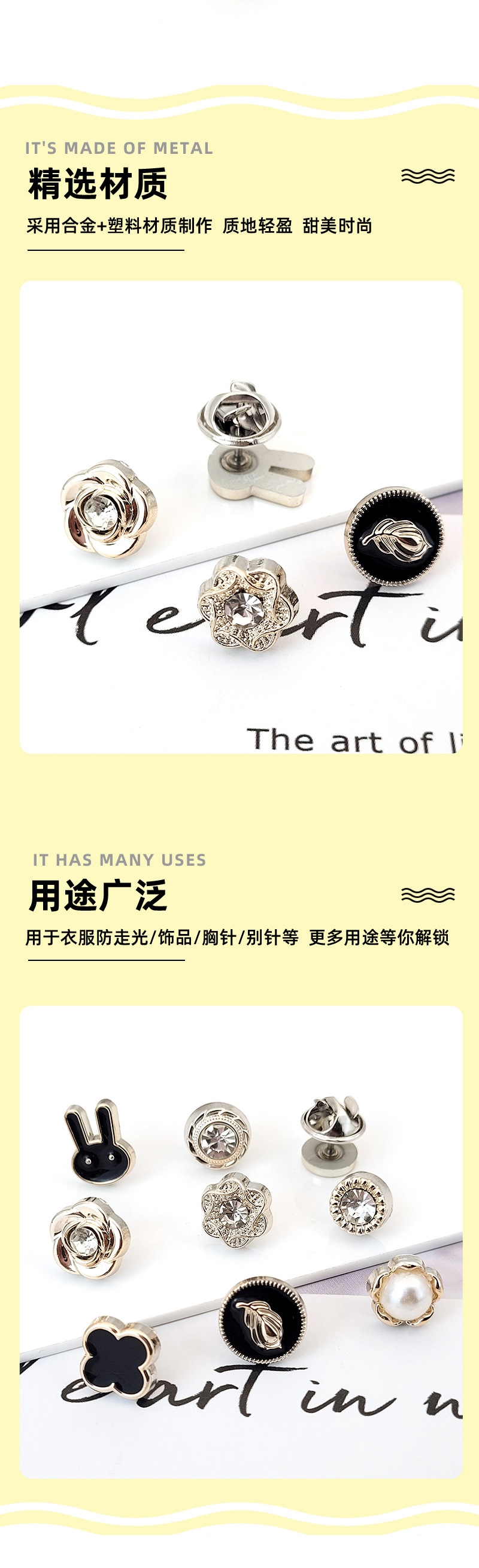 Пряжка с защитой от воздействия, съемная женская фиксированная брошь с низким воротником, пряжка без швов, пряжка для ногтей, стильная рубашка, декоративная пряжка