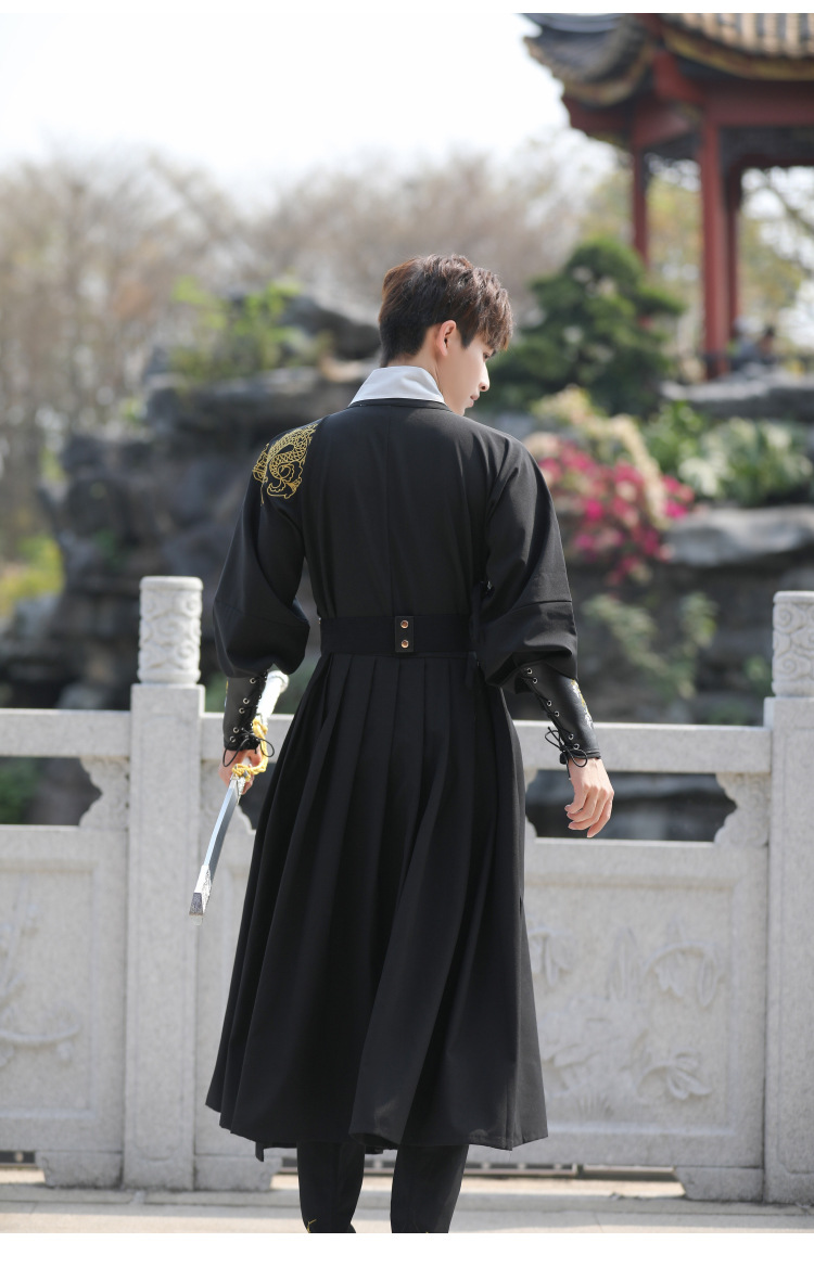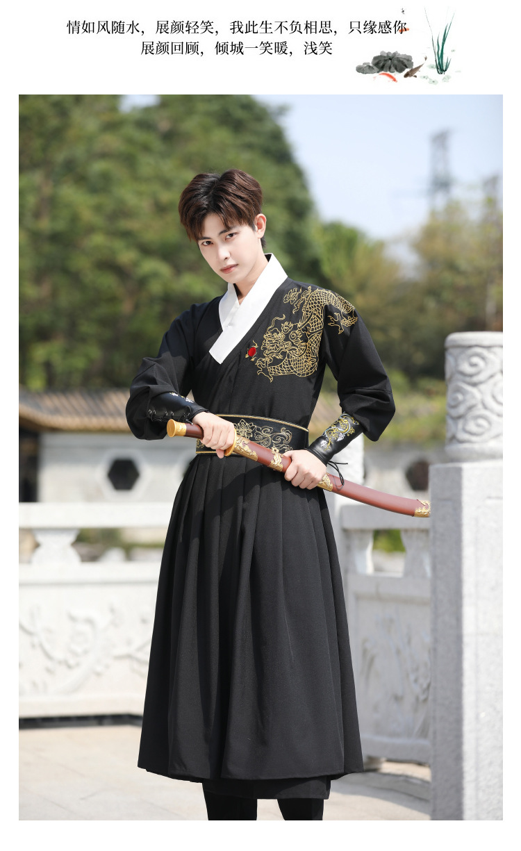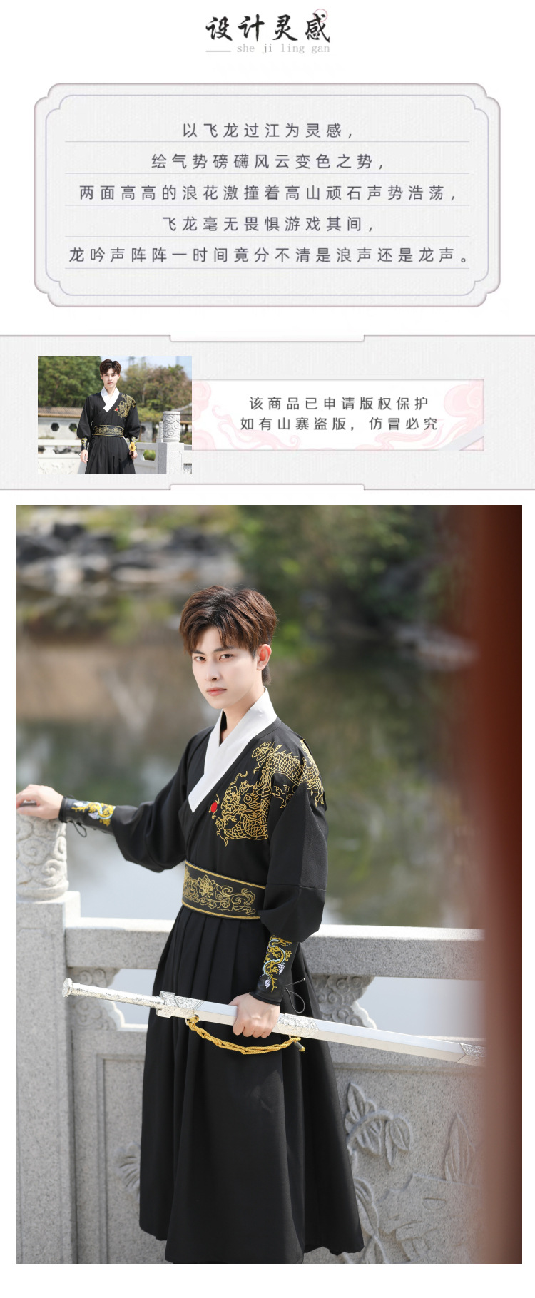 Одежда Jinyiwei в китайском стиле с изображением летучей рыбы, оригинальный старинный Улучшенный традиционный мужской костюм ханьфу с рисунком дракона, черный полный комплект