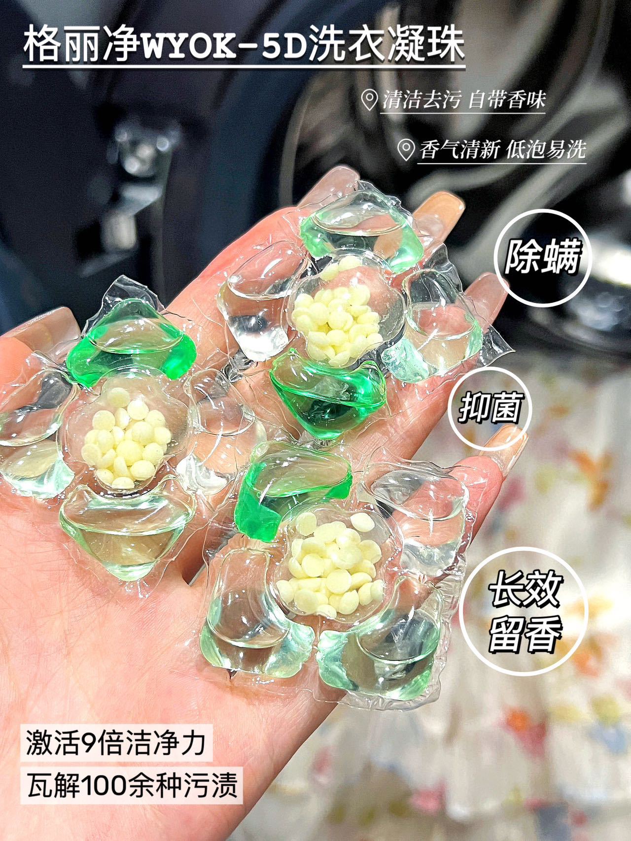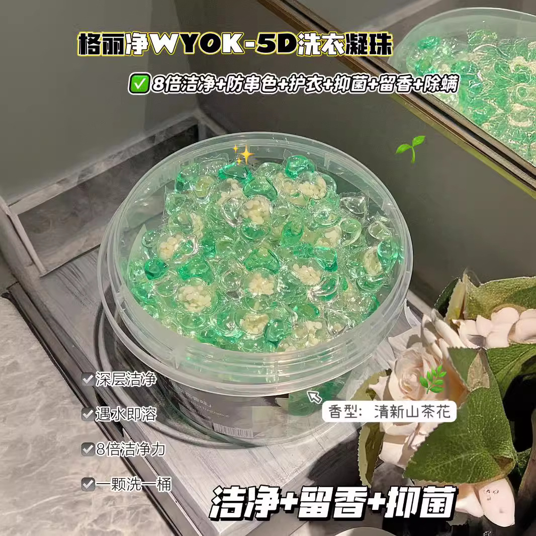Капсулы для стирки Camellia fragrance 5D, удаление пятен, стойкий аромат, устранение клещей, антибактериальные, концентрированные капсулы для стирки.