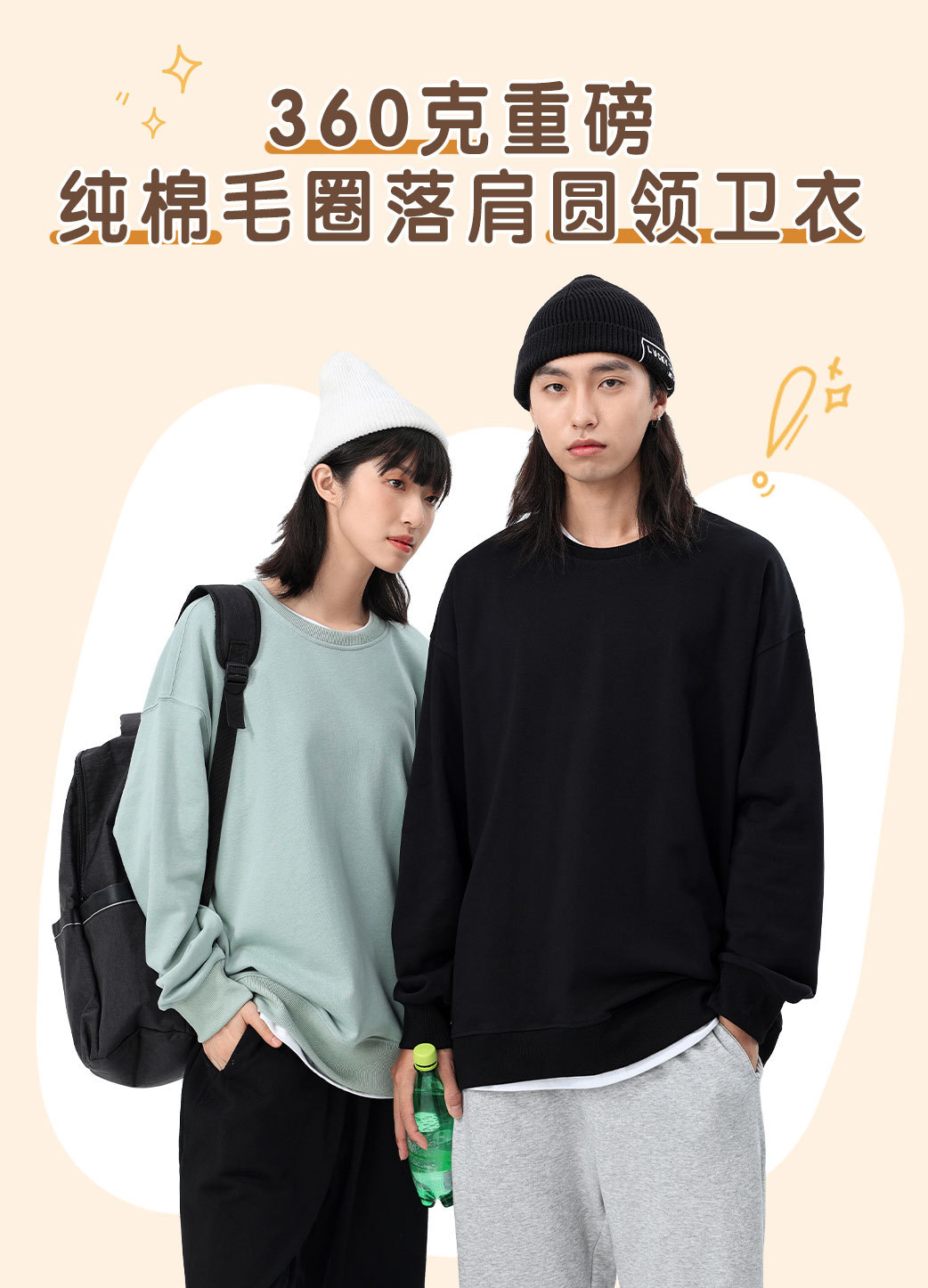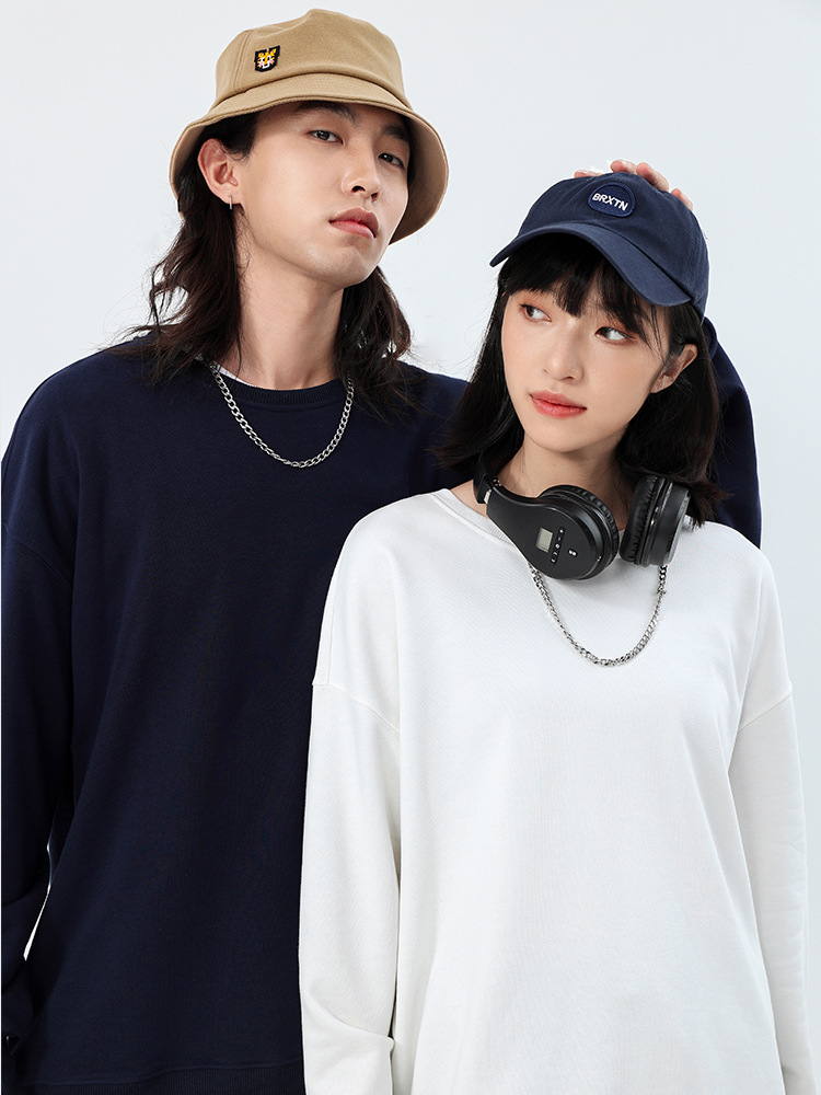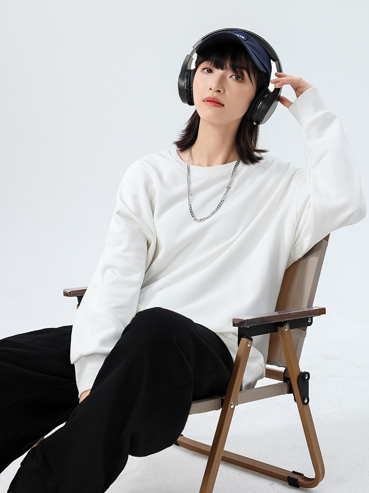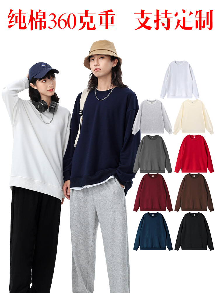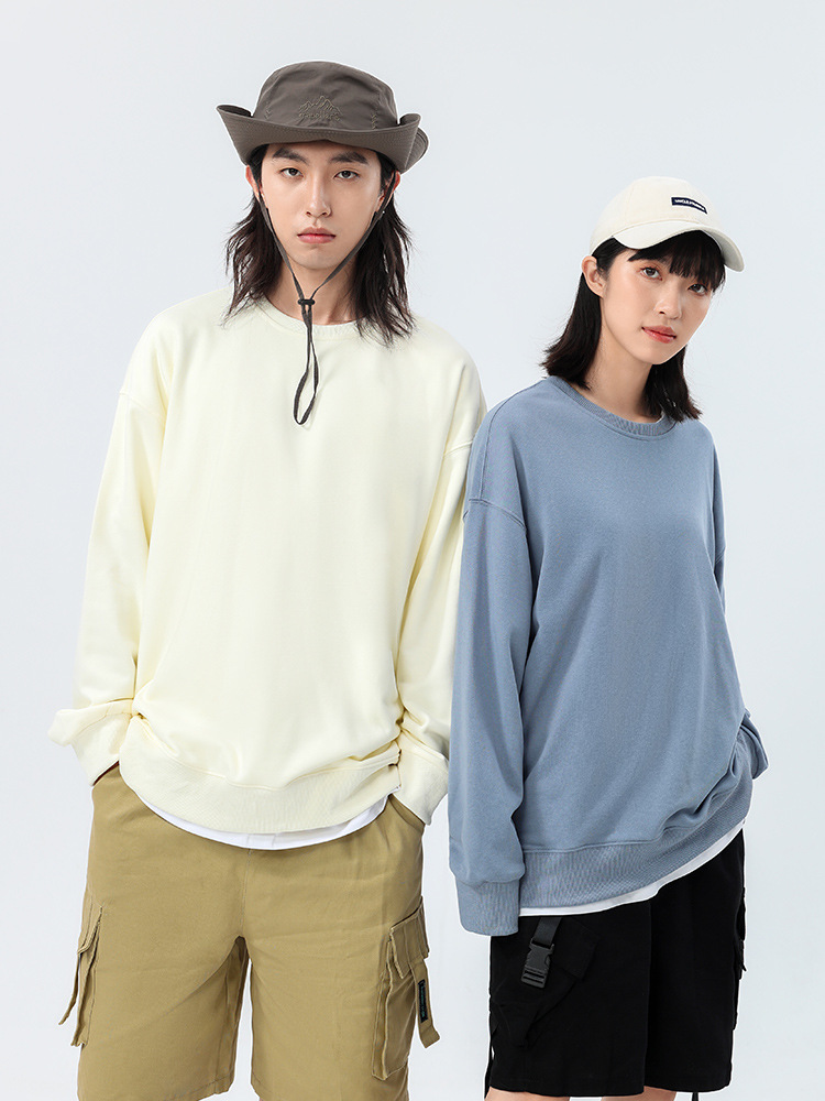 Толстовка с круглым вырезом и спущенным плечом, 360 г, из махровой ткани, парный стиль, свободный крой, с возможностью нанесения принта, новый пуловер с длинными рукавами, утолщенный, повседневный стиль.