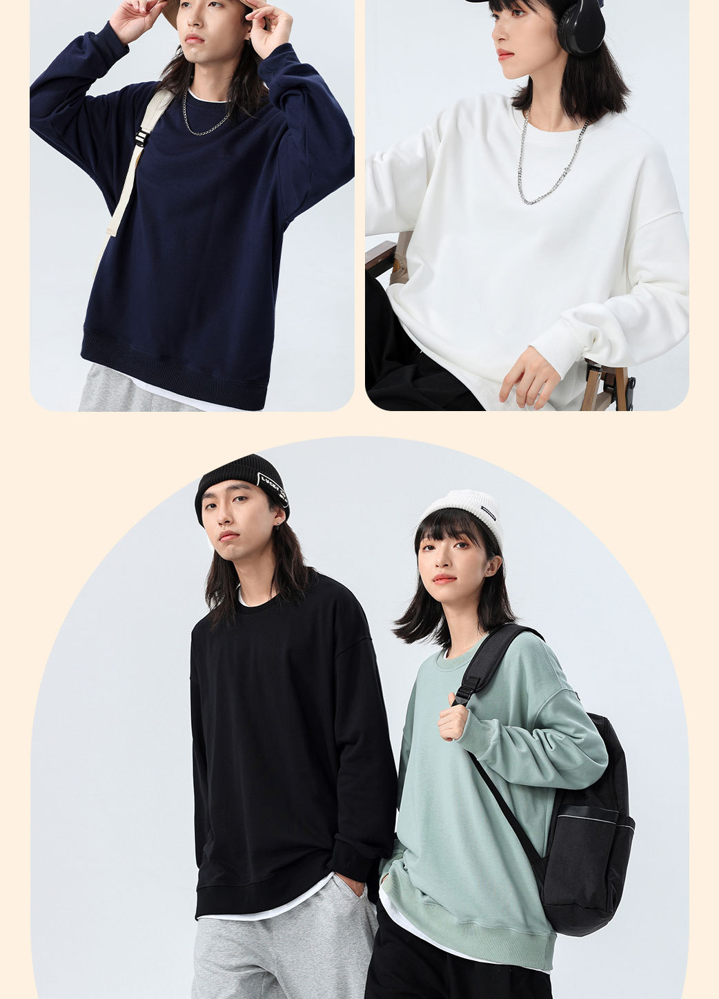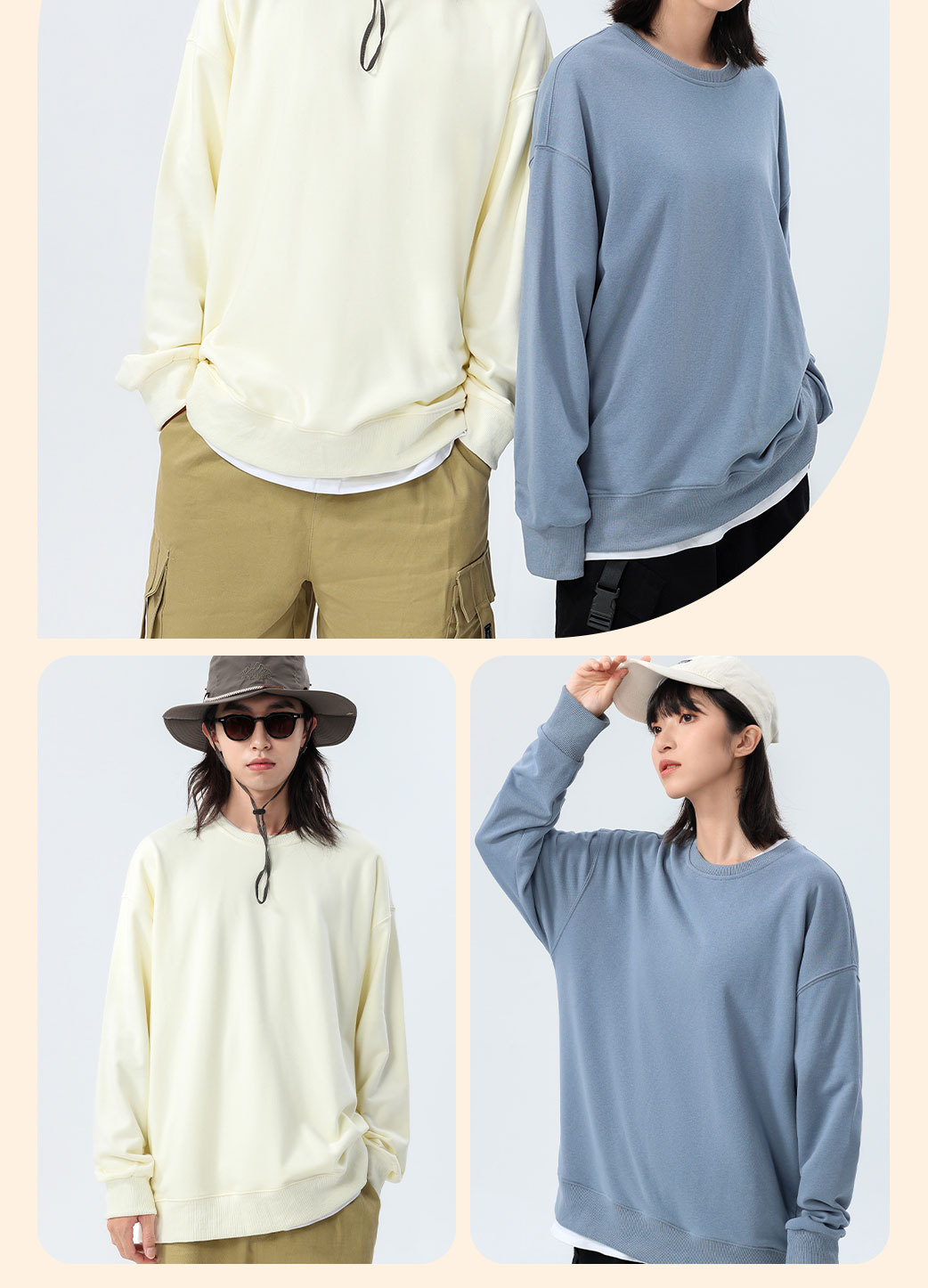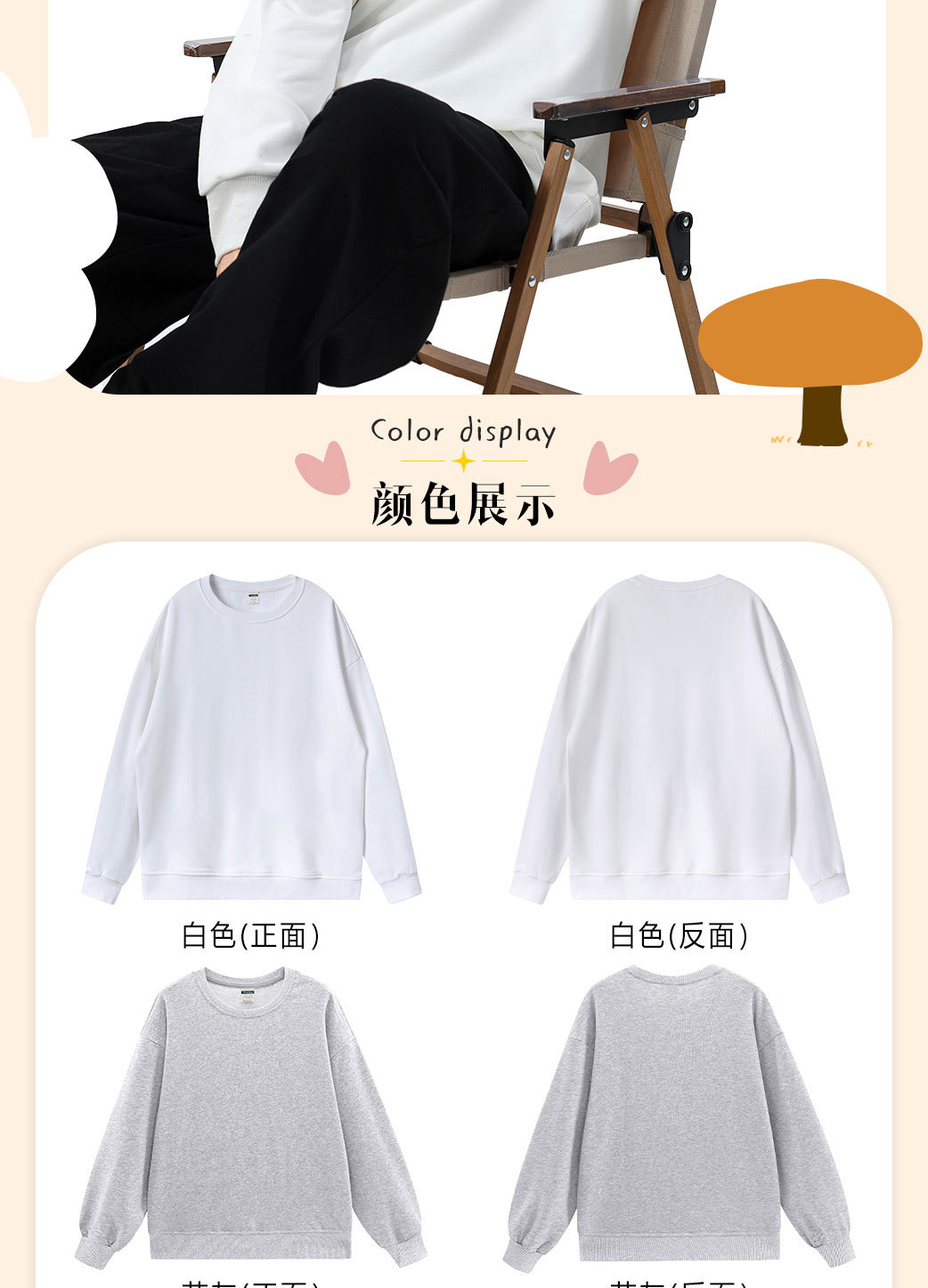 Толстовка с круглым вырезом и спущенным плечом, 360 г, из махровой ткани, парный стиль, свободный крой, с возможностью нанесения принта, новый пуловер с длинными рукавами, утолщенный, повседневный стиль.