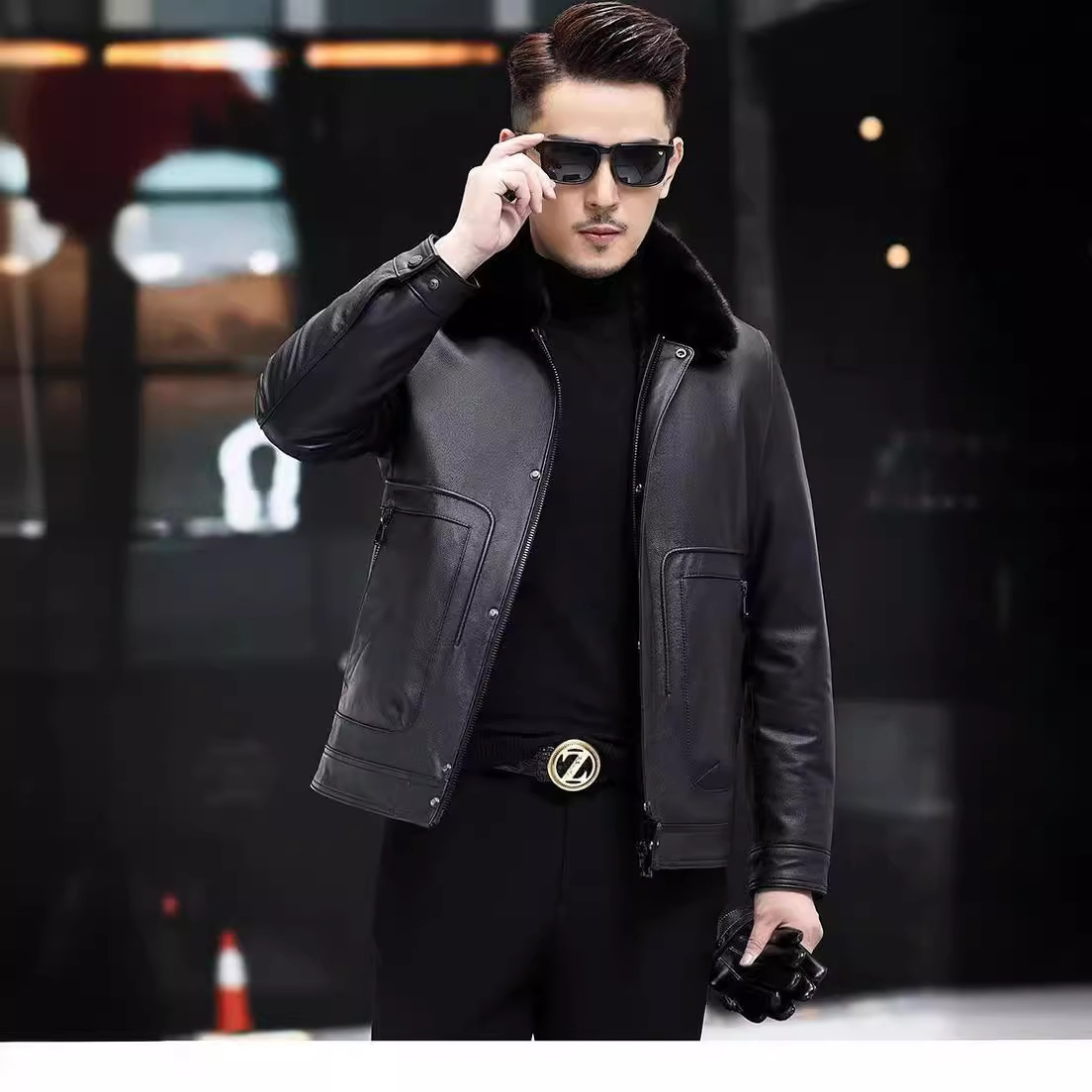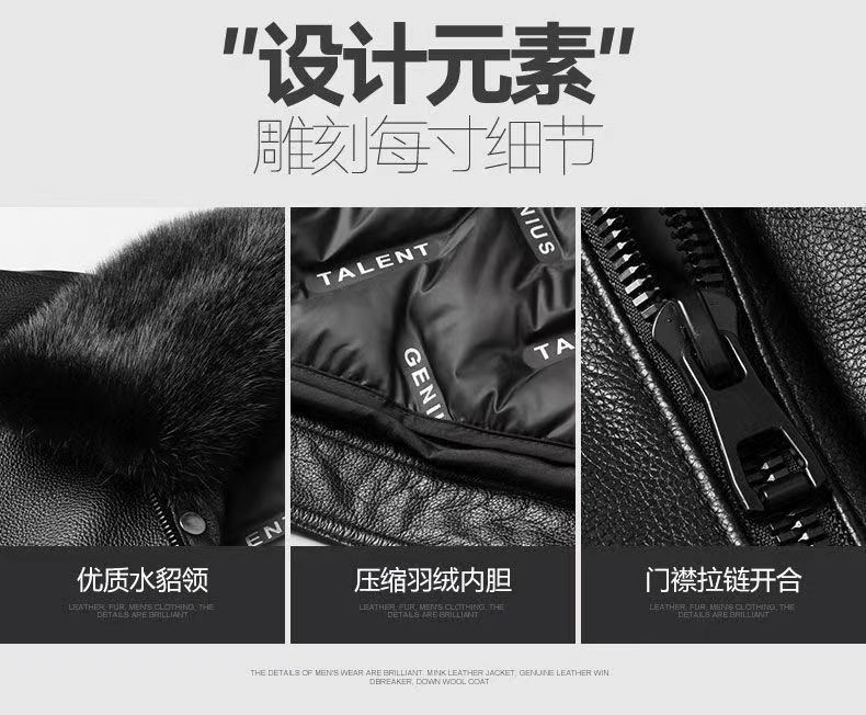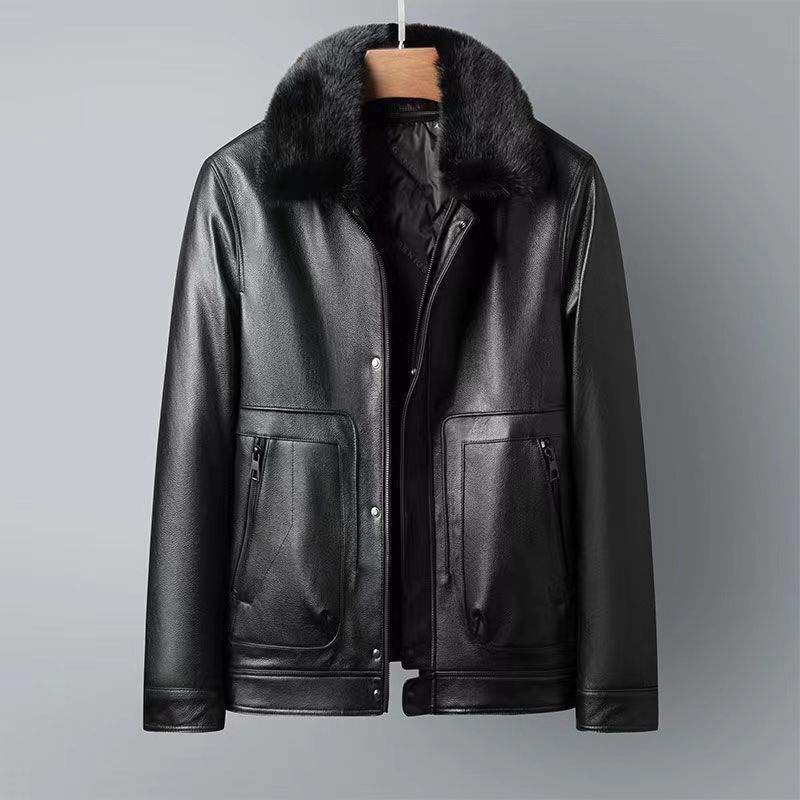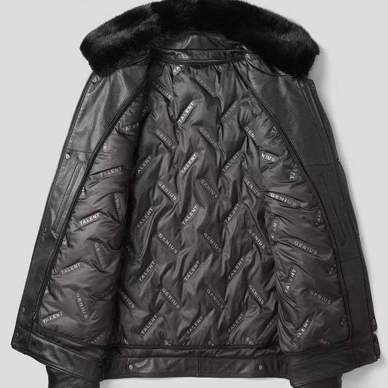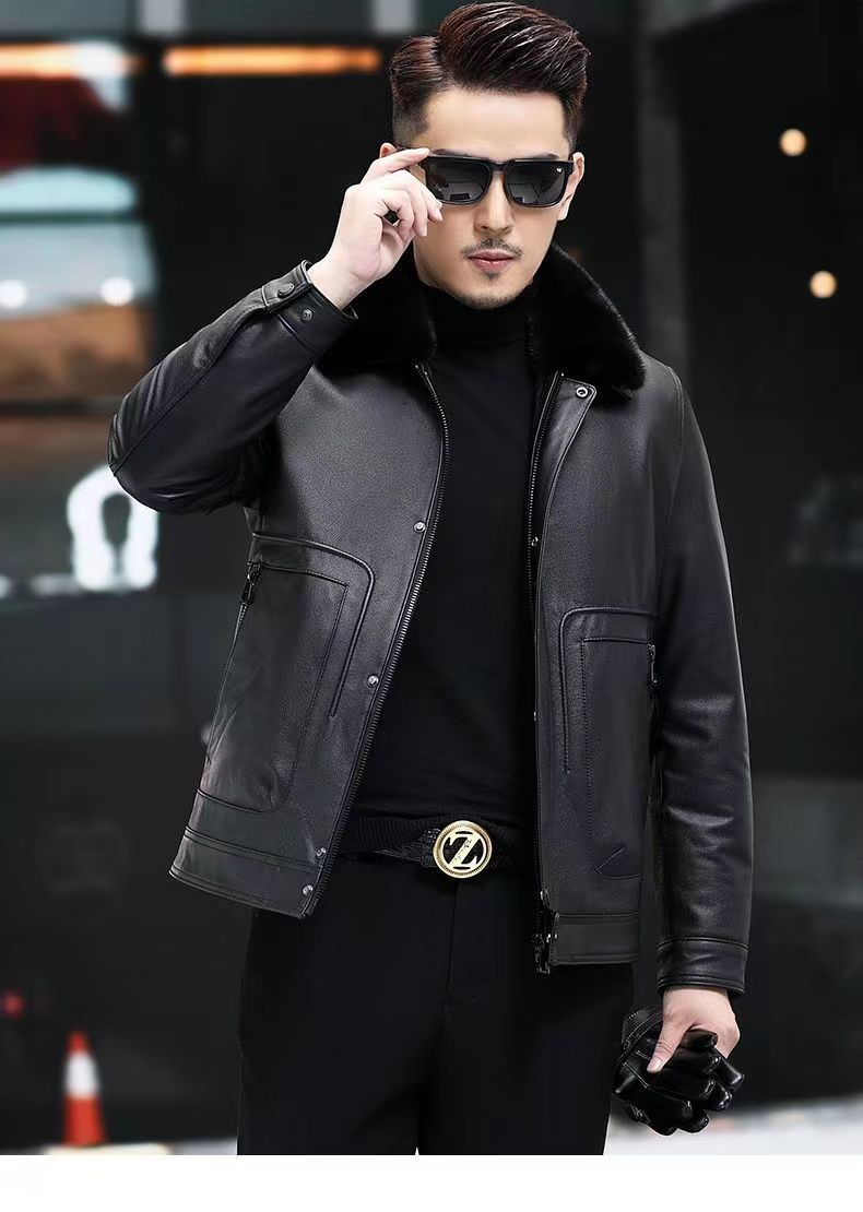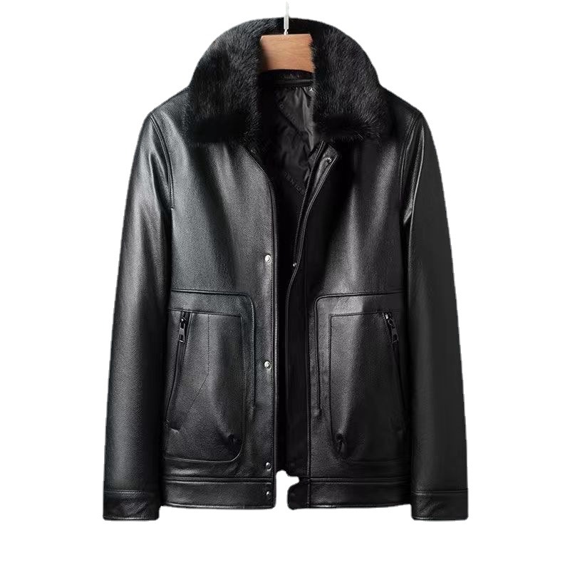 Куртка мужская из натуральной кожи (первый слой), с отстегивающимся воротником из меха норки и пуховым утеплителем, прямые поставки с фабрики. Мужская одежда из натуральной кожи, 100% натуральная кожа.