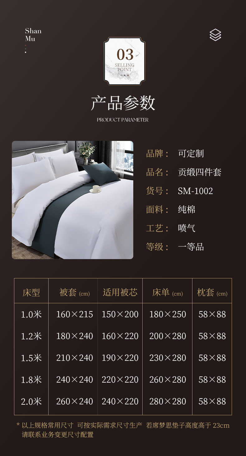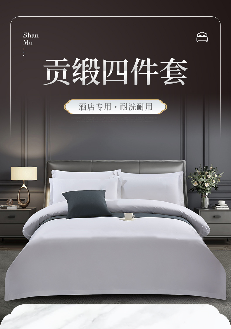 Хлопковый комплект постельного белья для отеля, 60 нитей, 4 предмета, белый, оптом