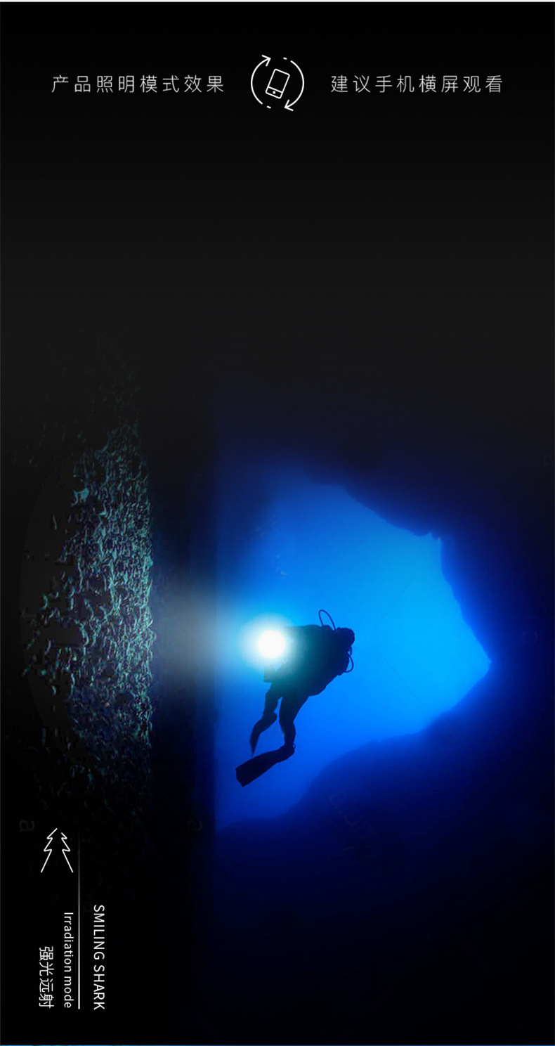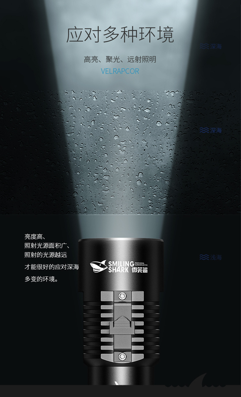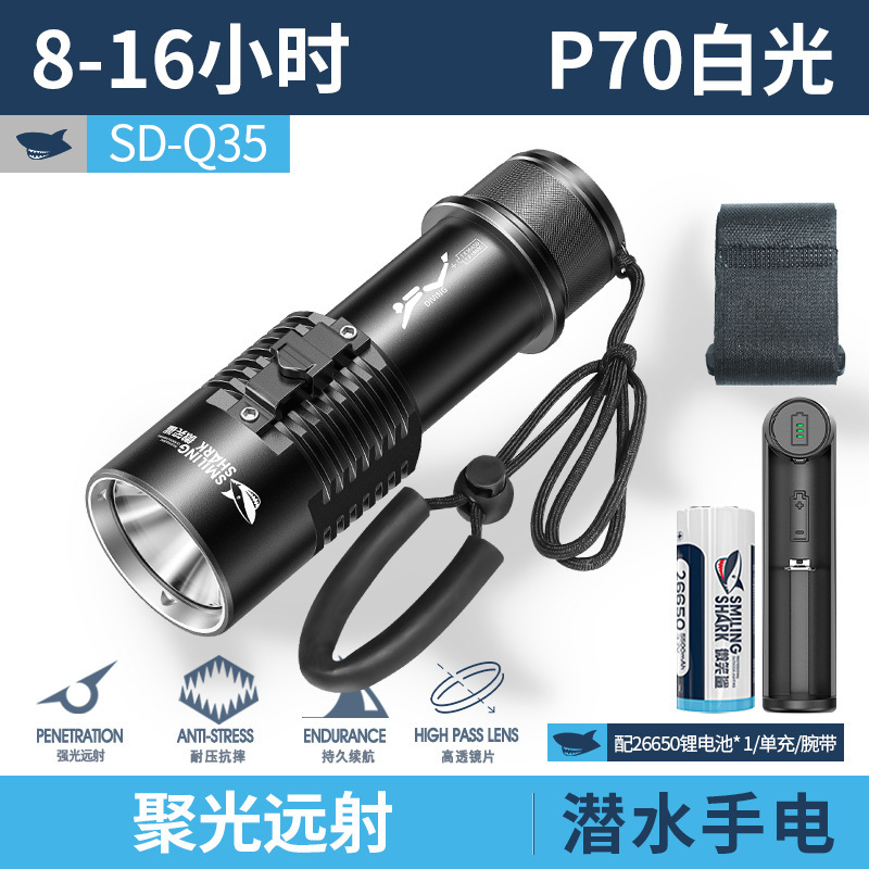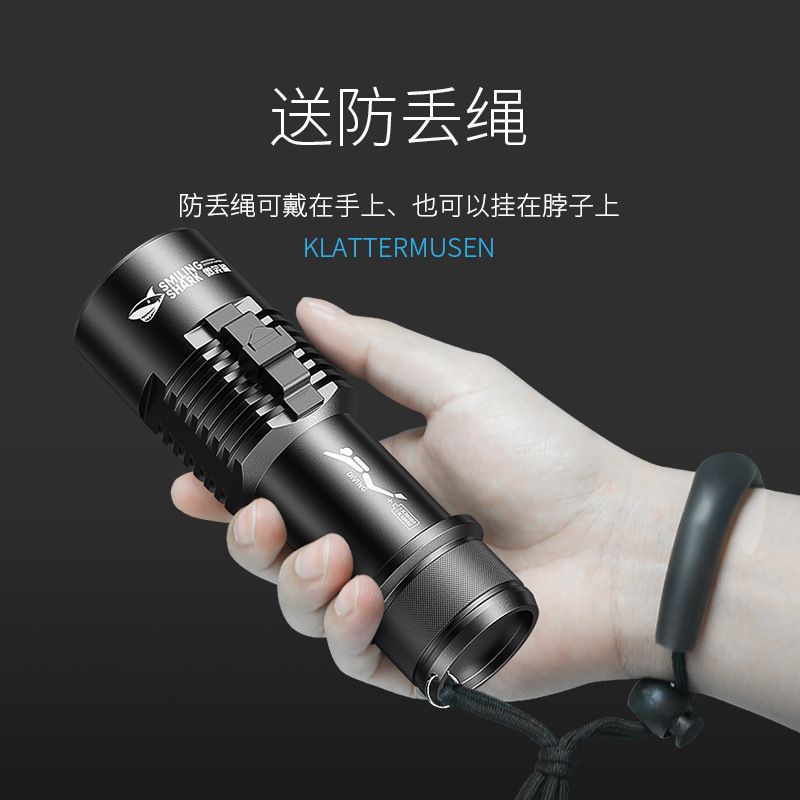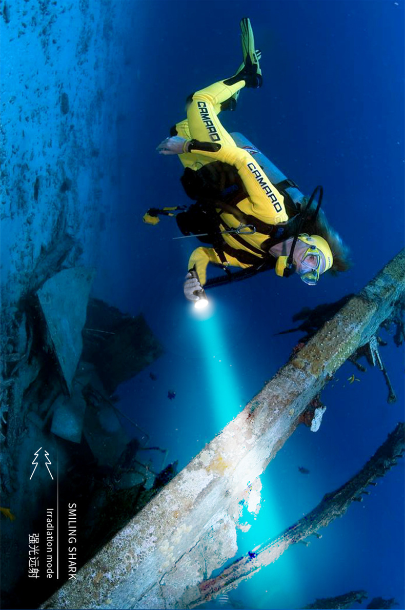 Улыбающаяся Акула Сильный свет Алюминиевый сплав Дайвинг Фонарик Открытый Приключения Дайвинг Водонепроницаемый фонарик Портативный Подводное освещение