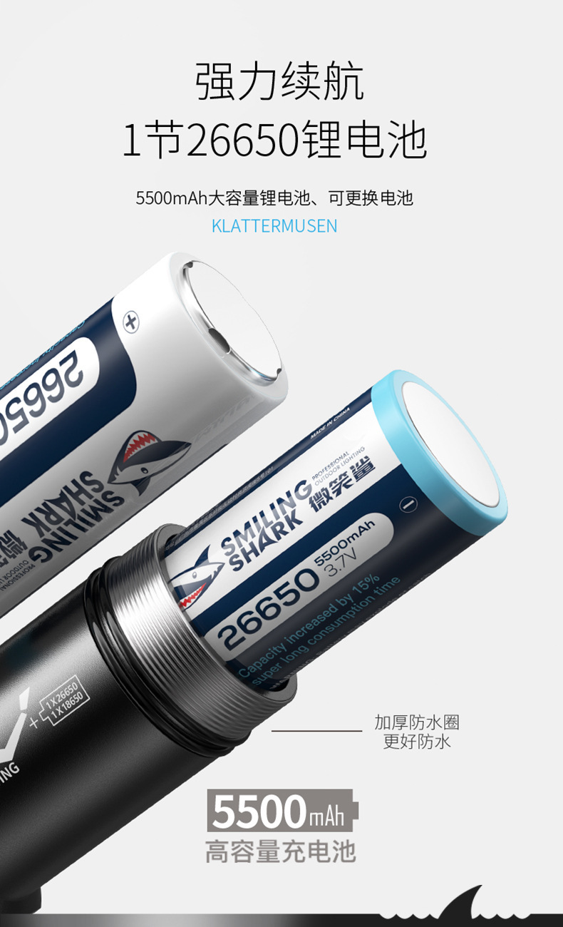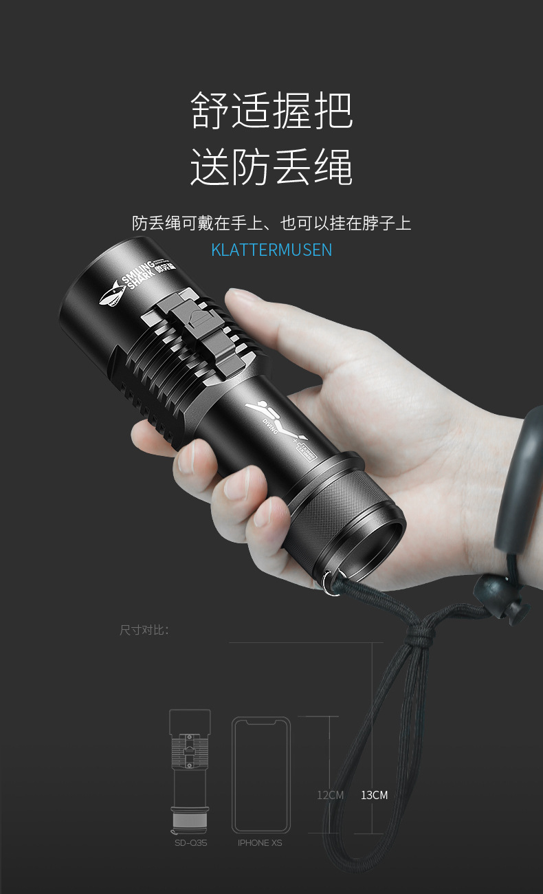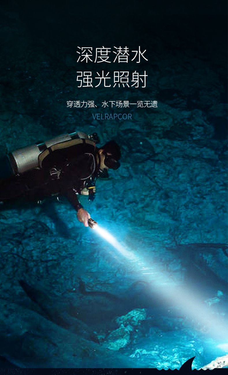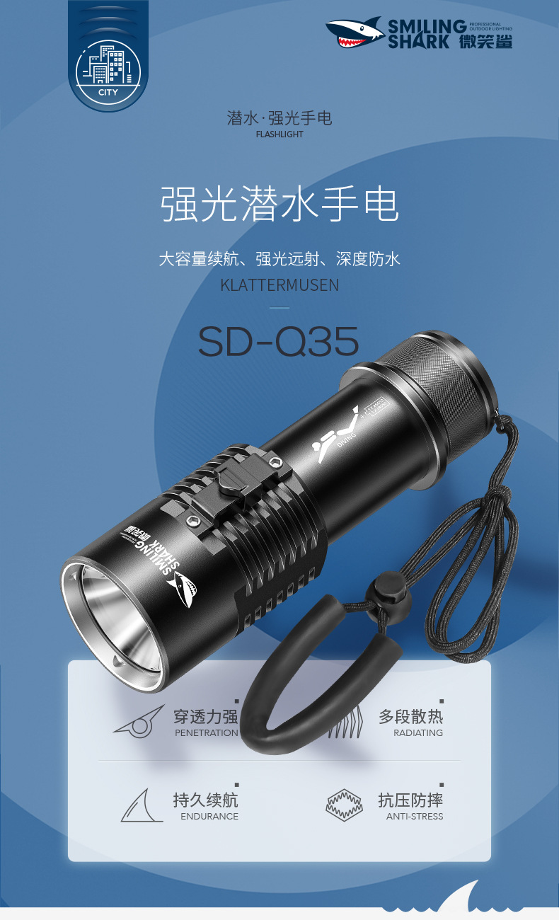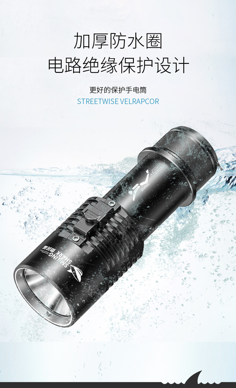 Улыбающаяся Акула Сильный свет Алюминиевый сплав Дайвинг Фонарик Открытый Приключения Дайвинг Водонепроницаемый фонарик Портативный Подводное освещение
