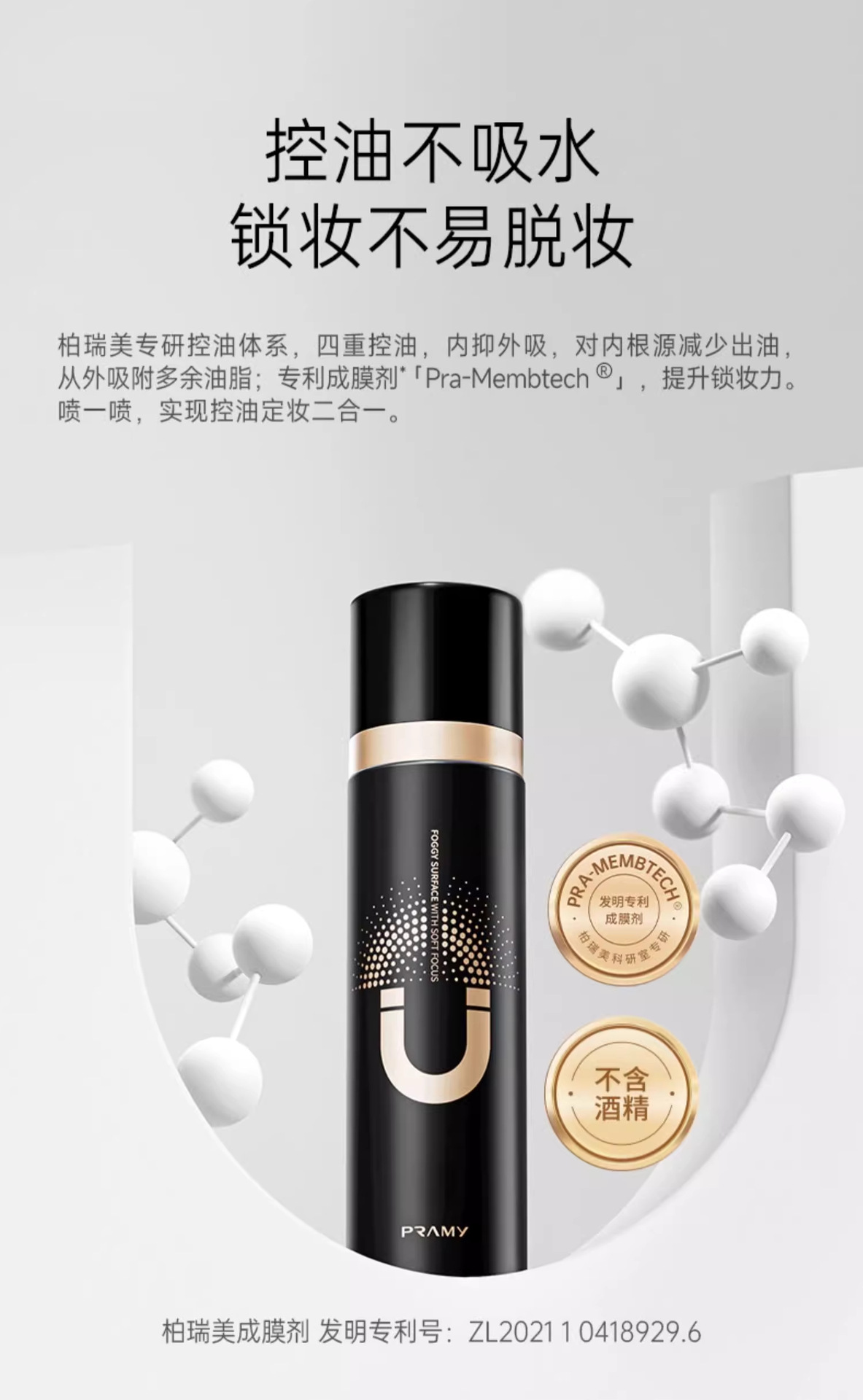 Спрей для фиксации макияжа PRAMY/PRAMY, контролирующий жирность, быстрого впитывания, портативный, увлажняющий, с эффектом мягкого матирования