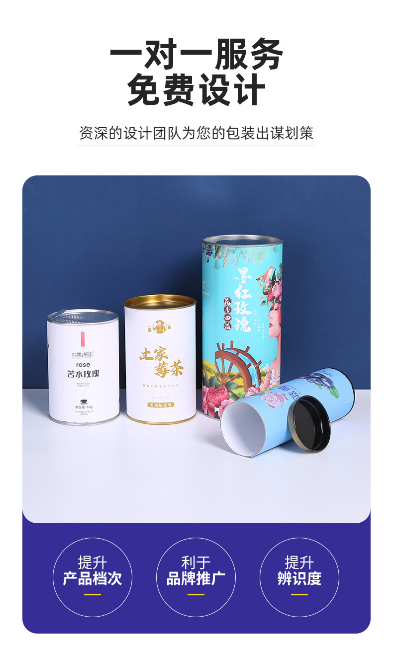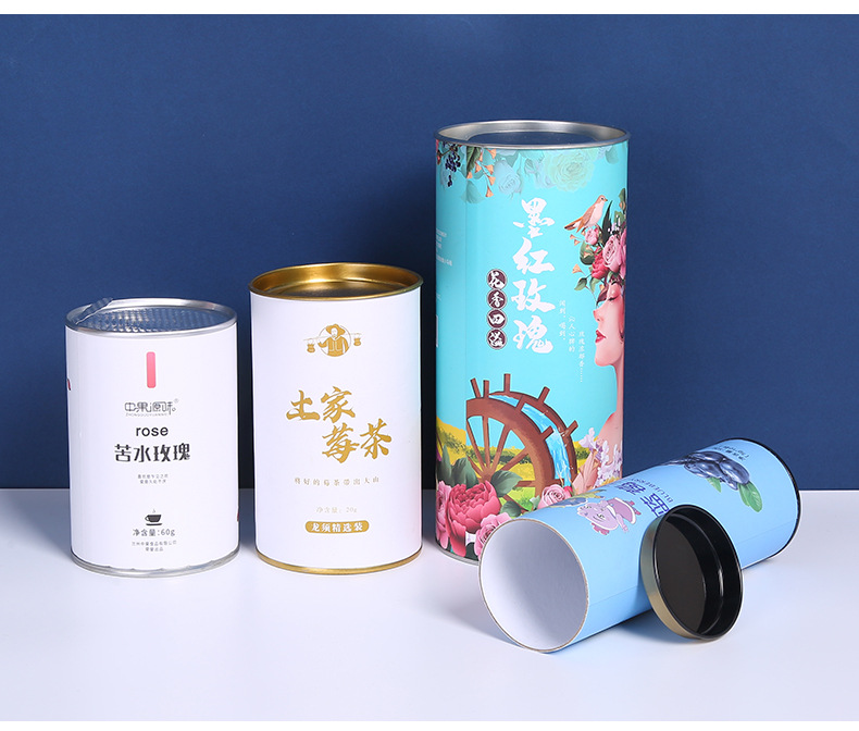 Чай бумажная банка оптом розы чай железная крышка бумажная трубка пищевая герметичная банка круглая упаковочная коробка с печатью логотипа