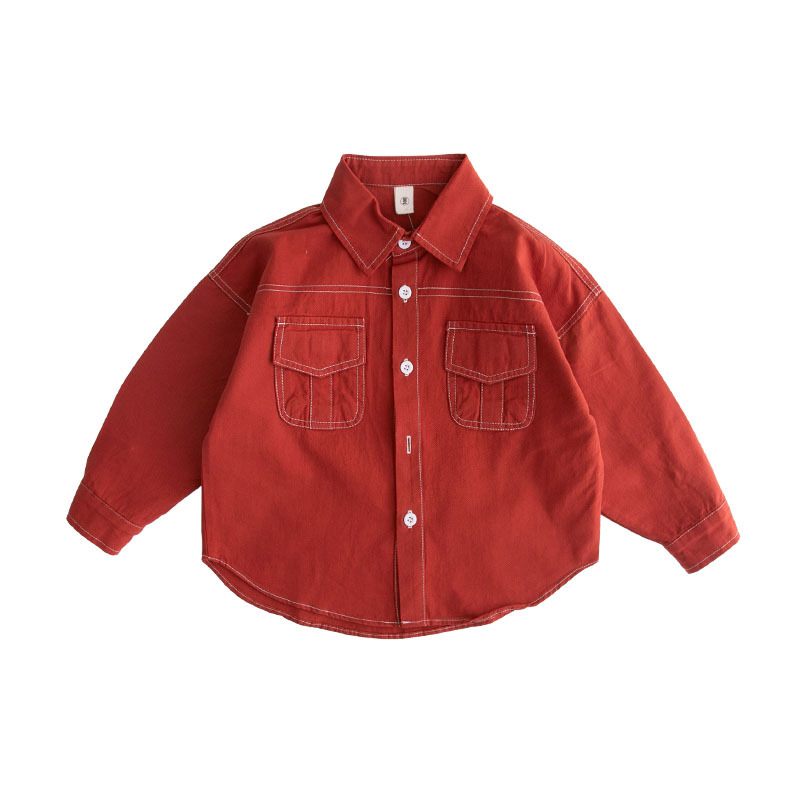Весеннее Новое энергичное красное детское хлопковое пальто, красная рубашка для мальчиков, Детская рубашка в Корейском стиле, весна и осень