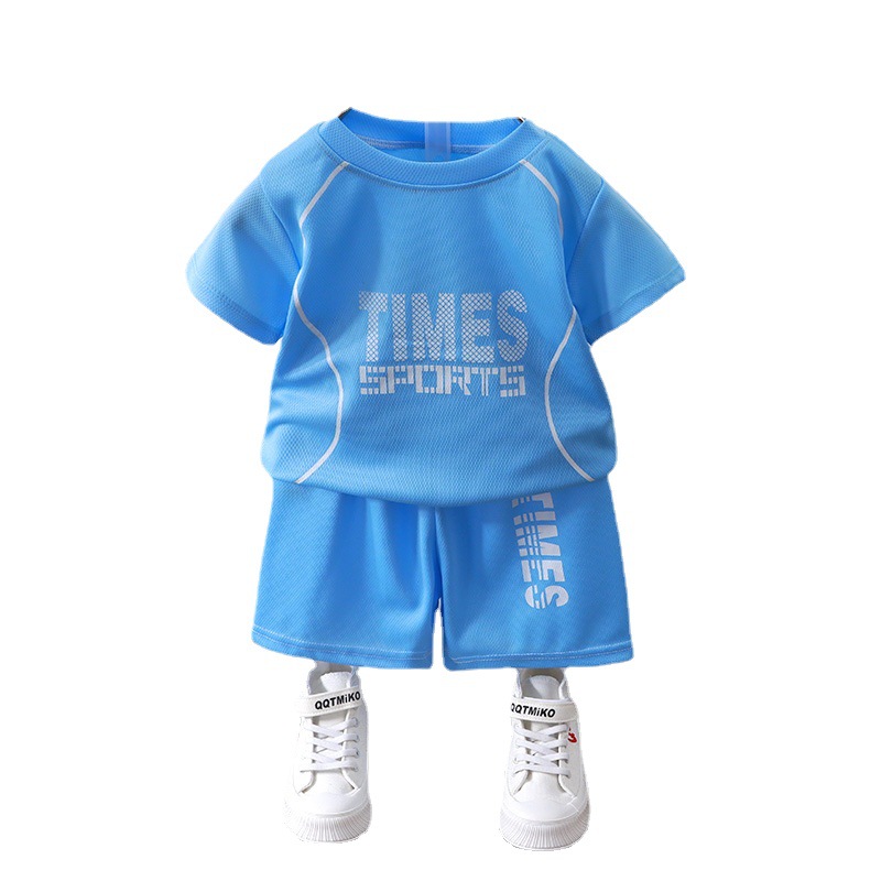 Детская спортивная одежда с короткими рукавами, спортивная одежда для мальчиков, быстросохнущие шорты-двойки для девочек, детская одежда среднего и большого размера оптом.