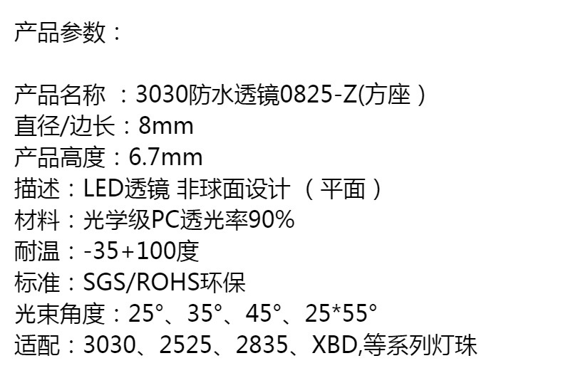 3030 водонепроницаемые линзы 0825-Z (квадратное сиденье)