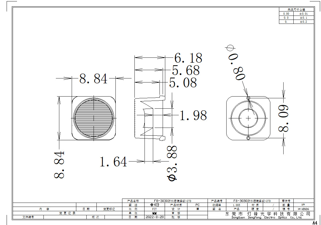 3030 Водонепроницаемая линза диаметром 8 мм, светоизлучающая поверхность с шариковой точечной полосой, угол полной точечной формы