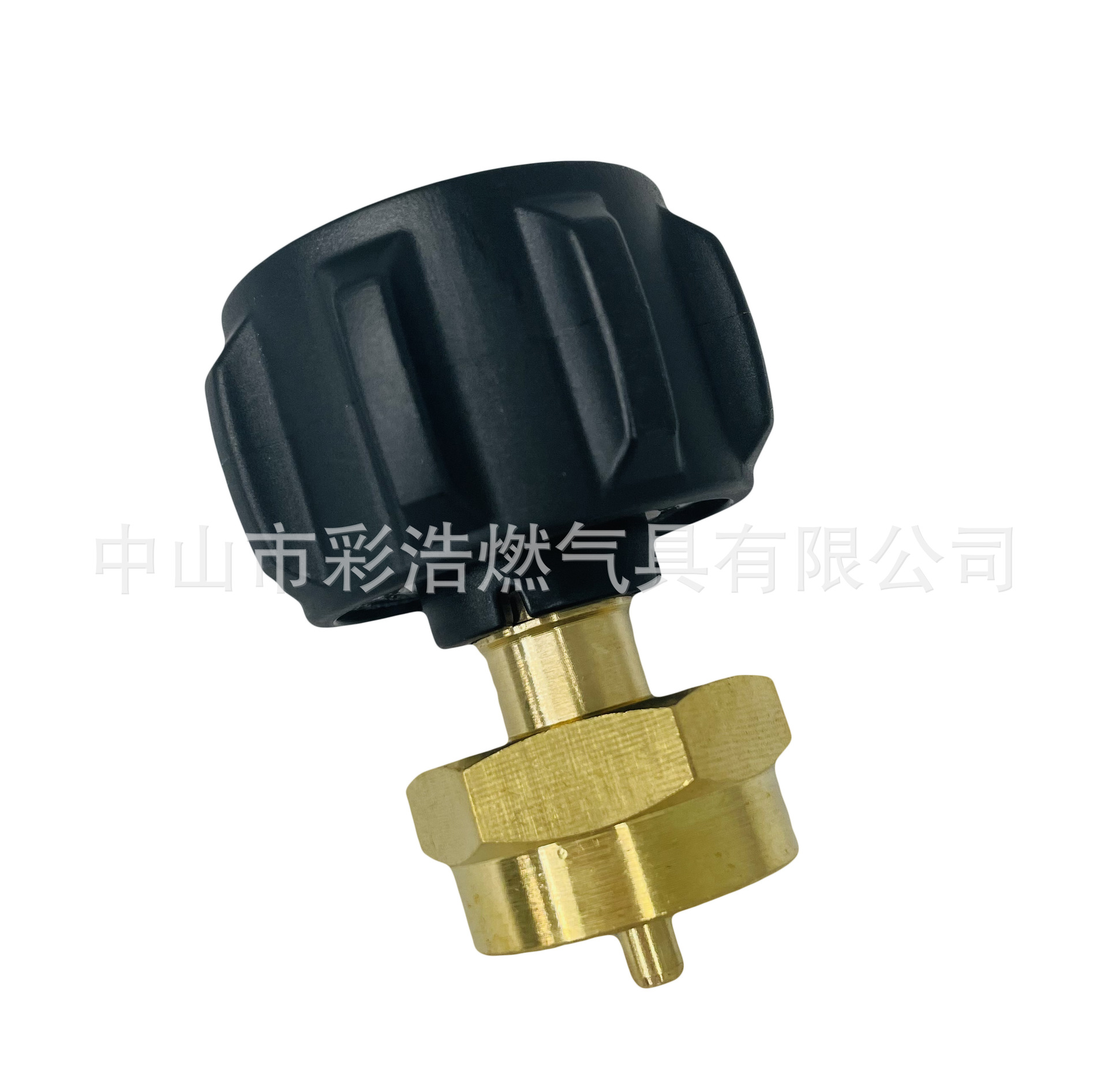 本产品为煤气转换接头,适用于北美气瓶将大煤气罐中的液化气转充到小型煤气罐中,以便烧烤或者外出野营时充气使用。