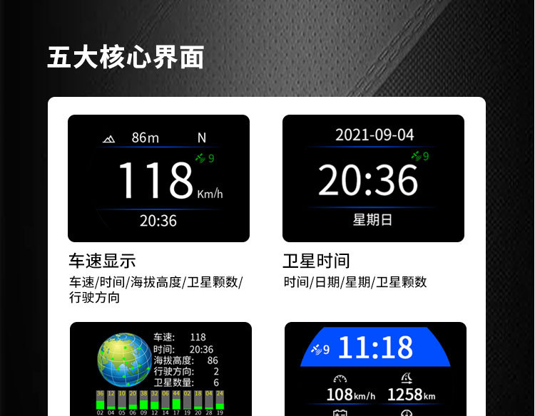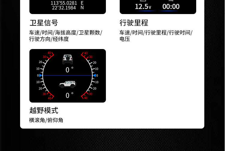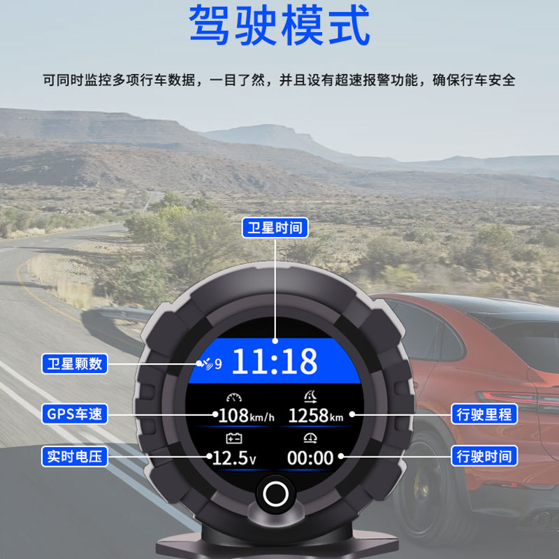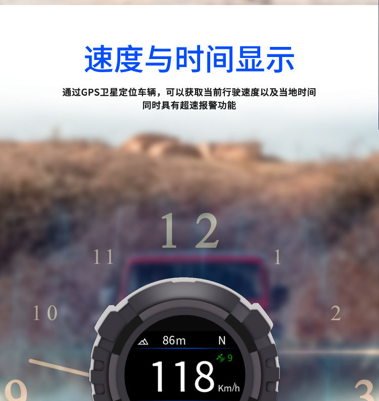 Универсальный проекционный дисплей HUD для автомобиля с GPS, отображением скорости, времени, высоты, компасом и функцией определения угла наклона для бездорожья