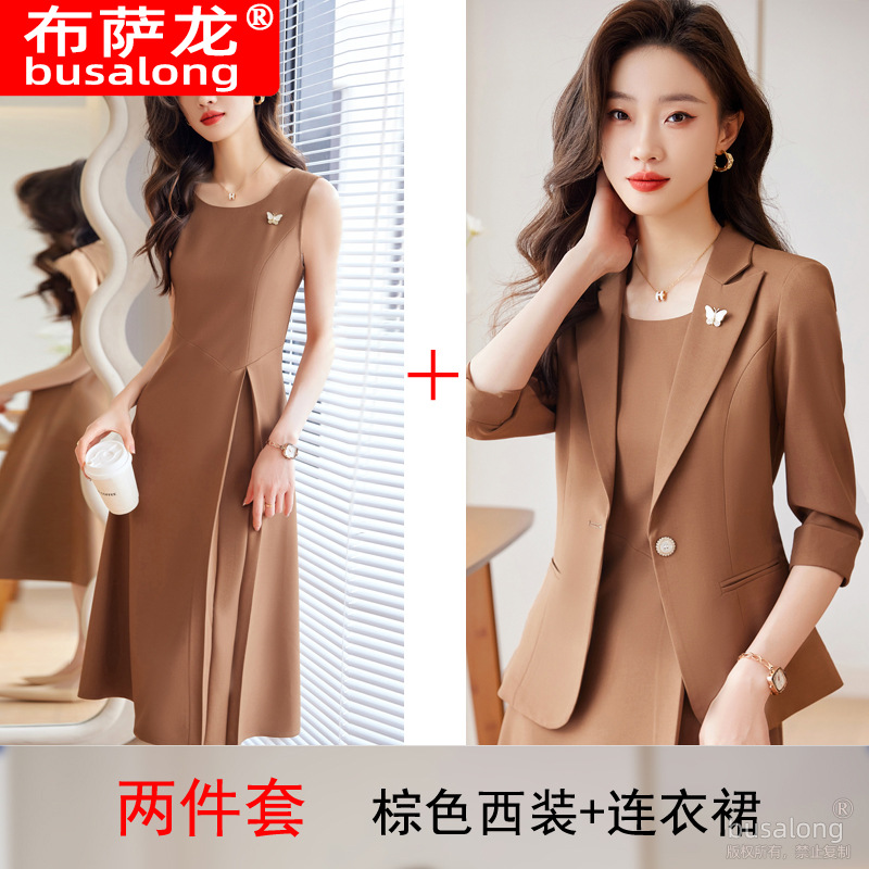 2025 новый стиль буса дракон женский средний рукав профессиональный костюм платье формальный набор интервью продажа спецодежды 966