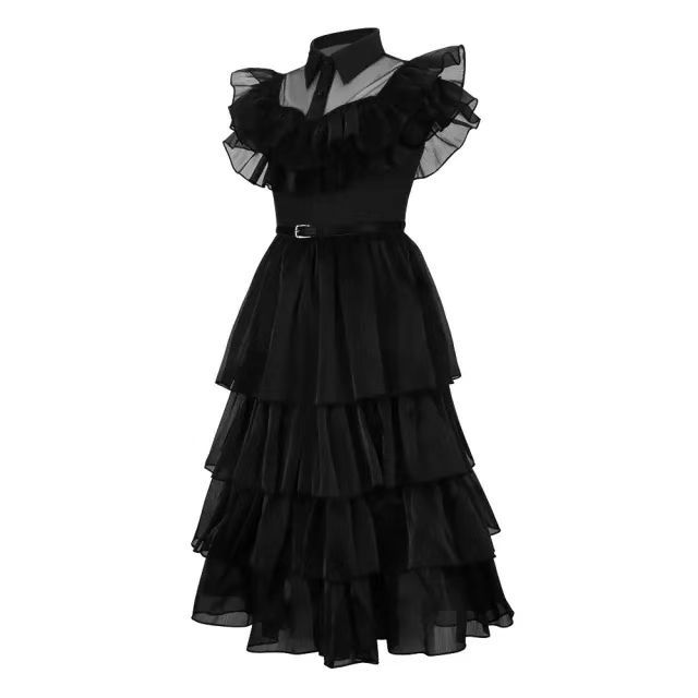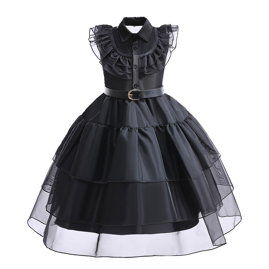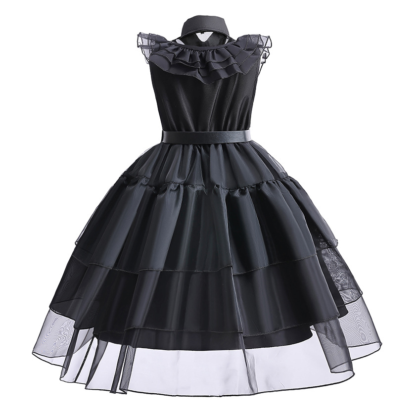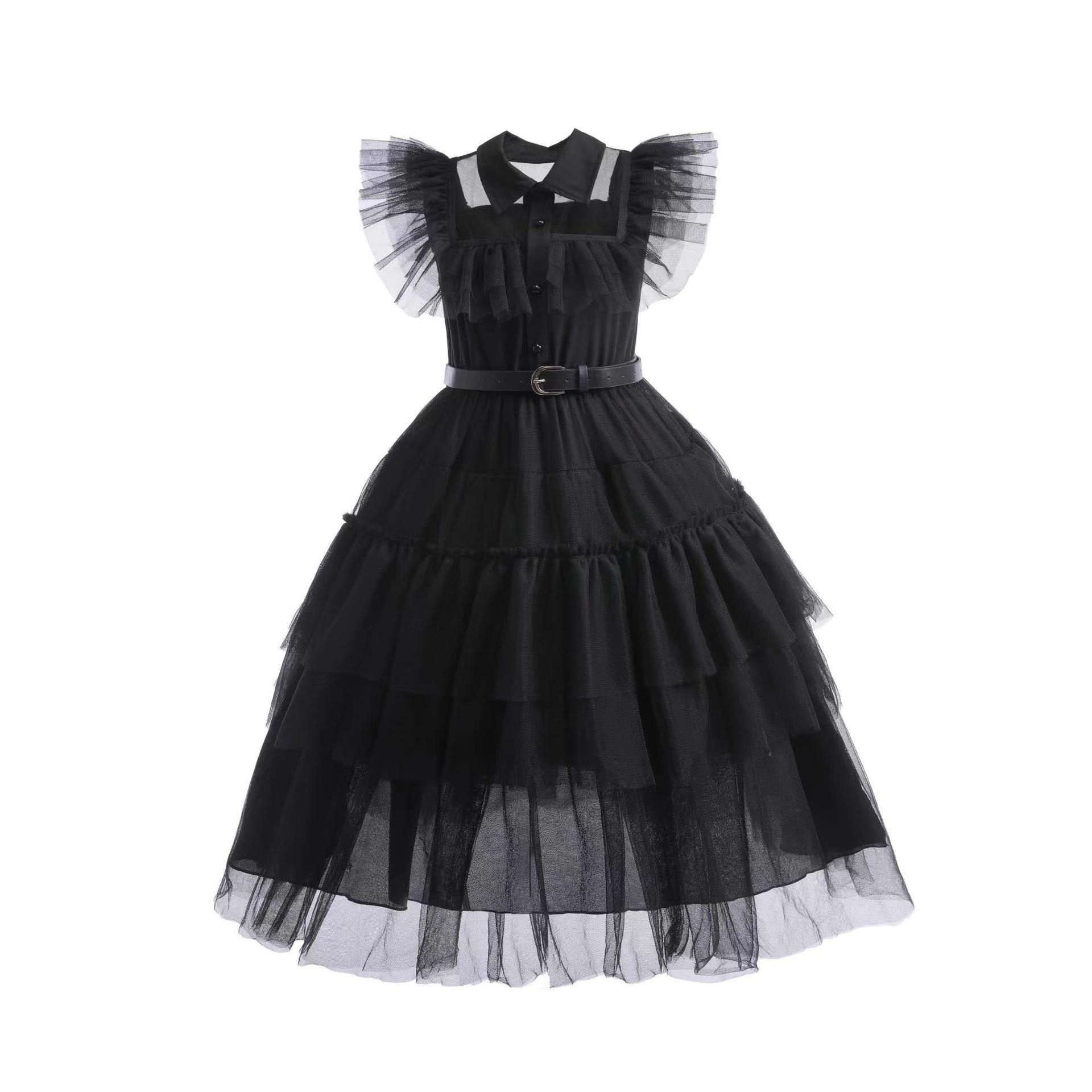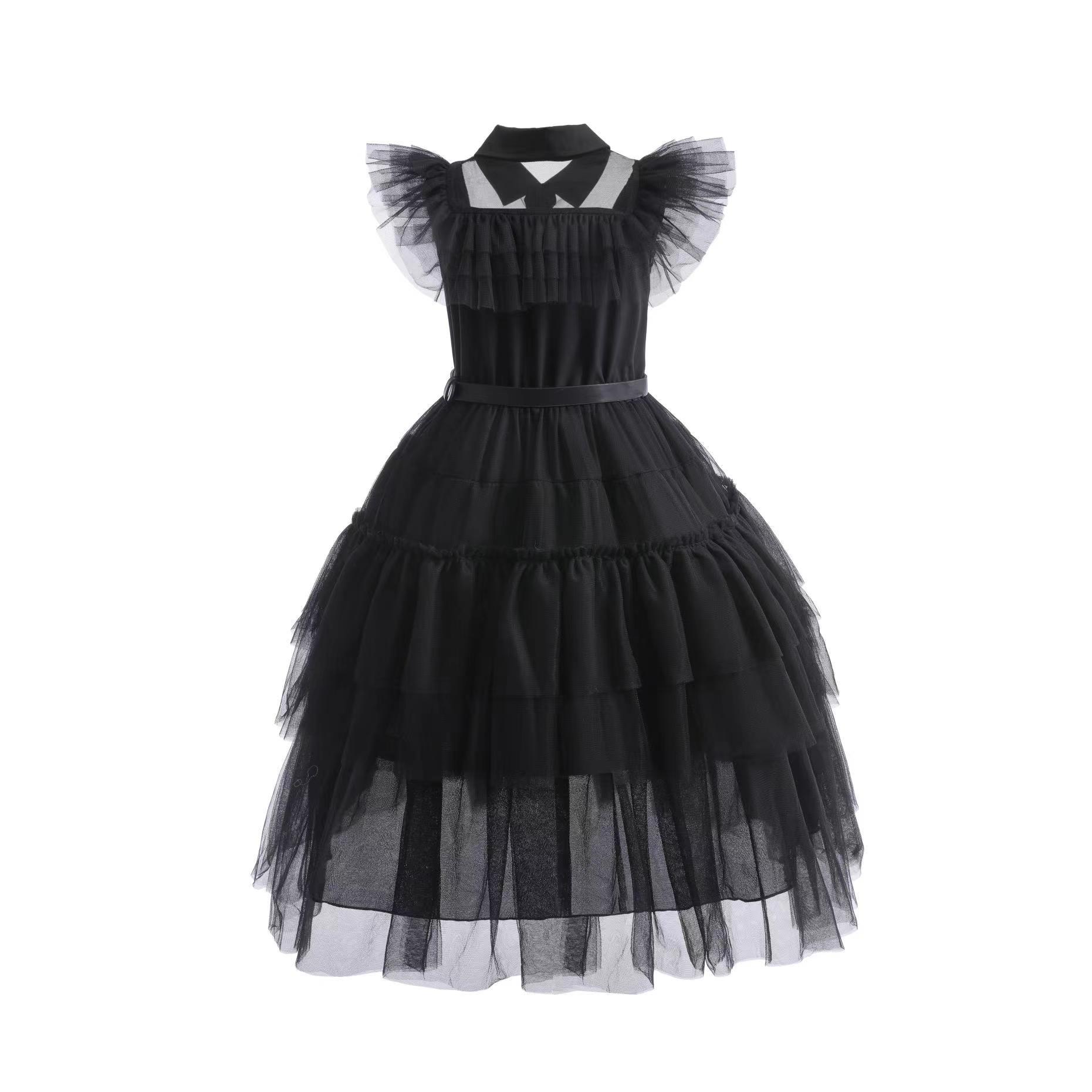 В среду, Adams COS Одежда для детской вечеринки, Черное Шифоновое Платье Адамса, цельная доставка