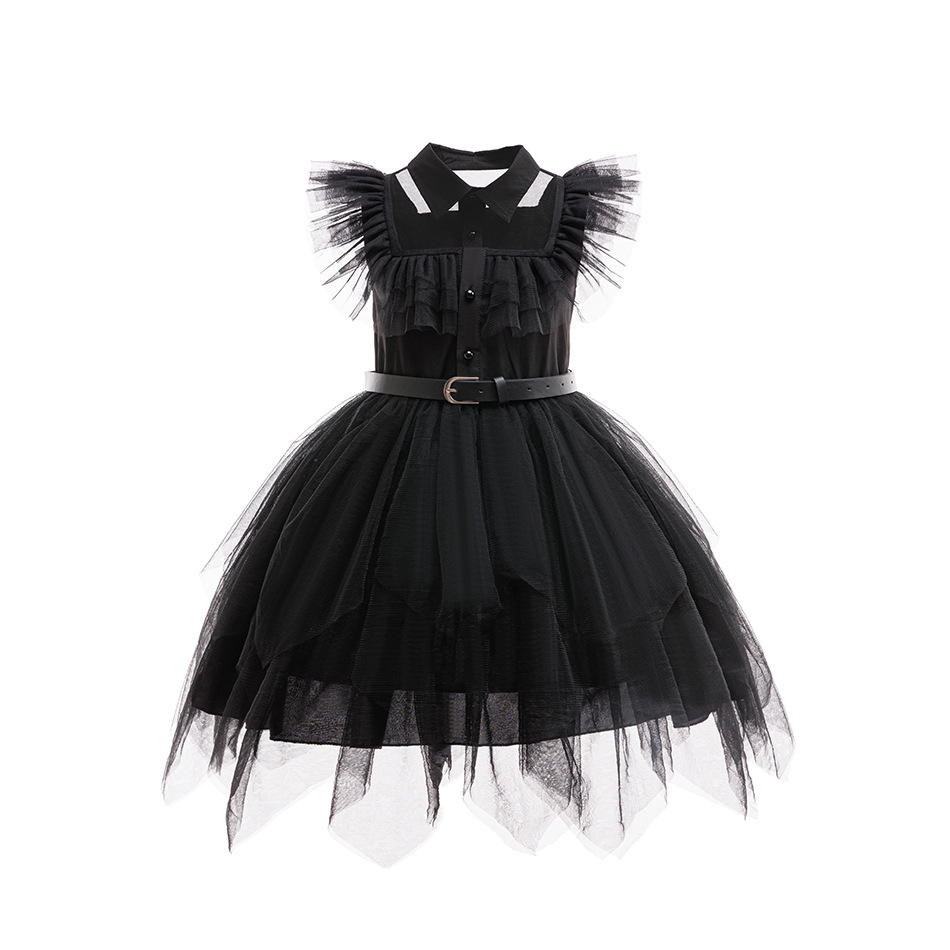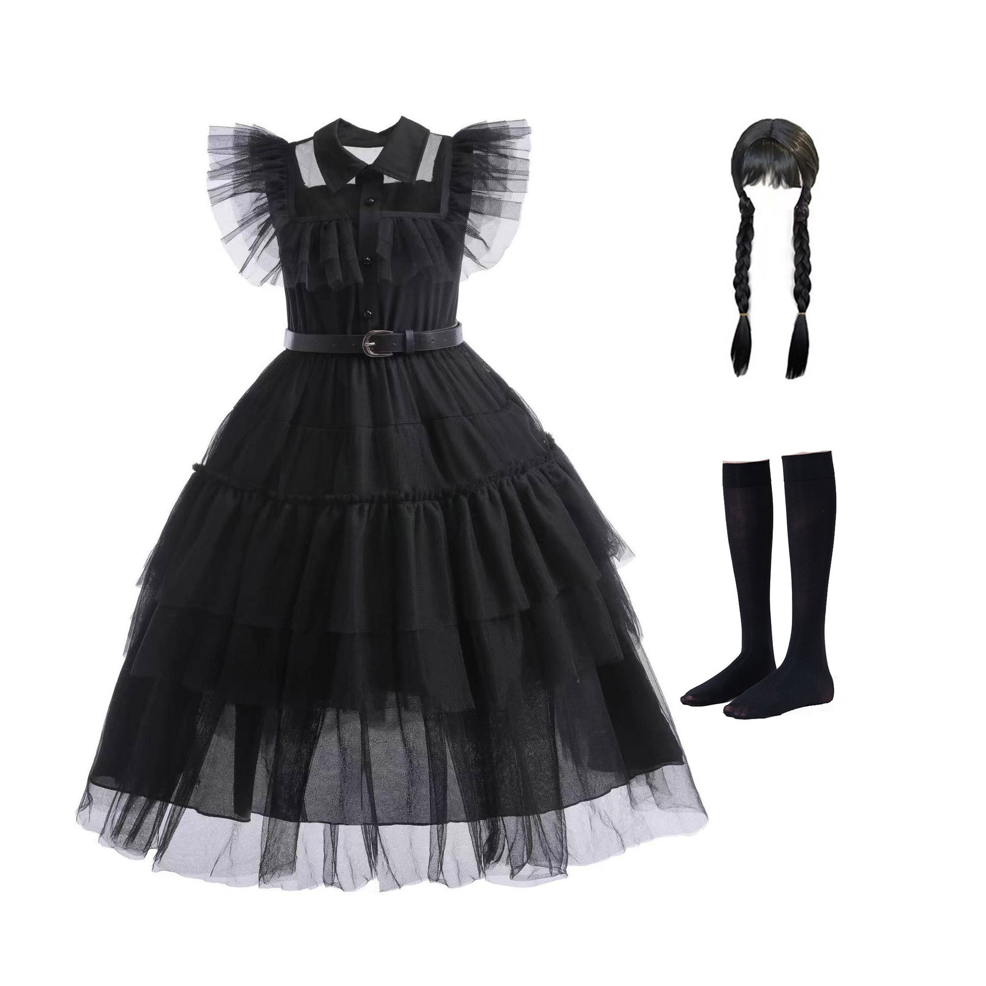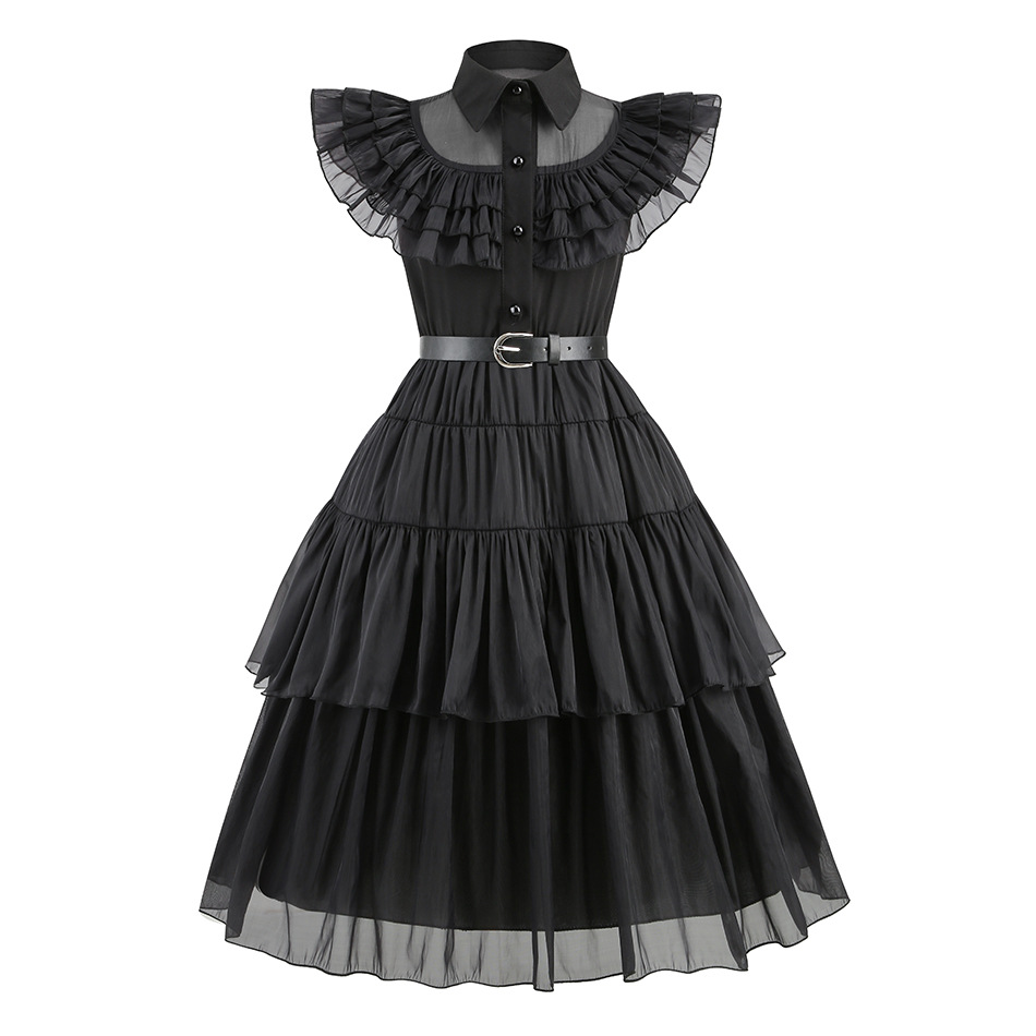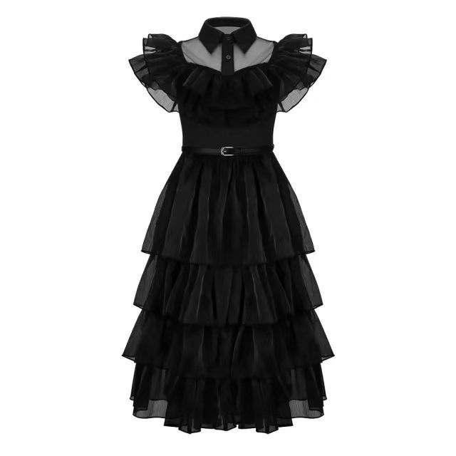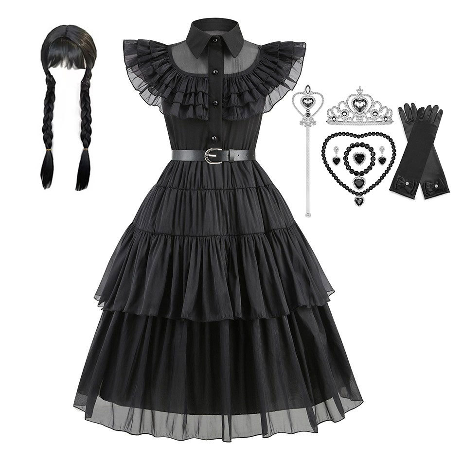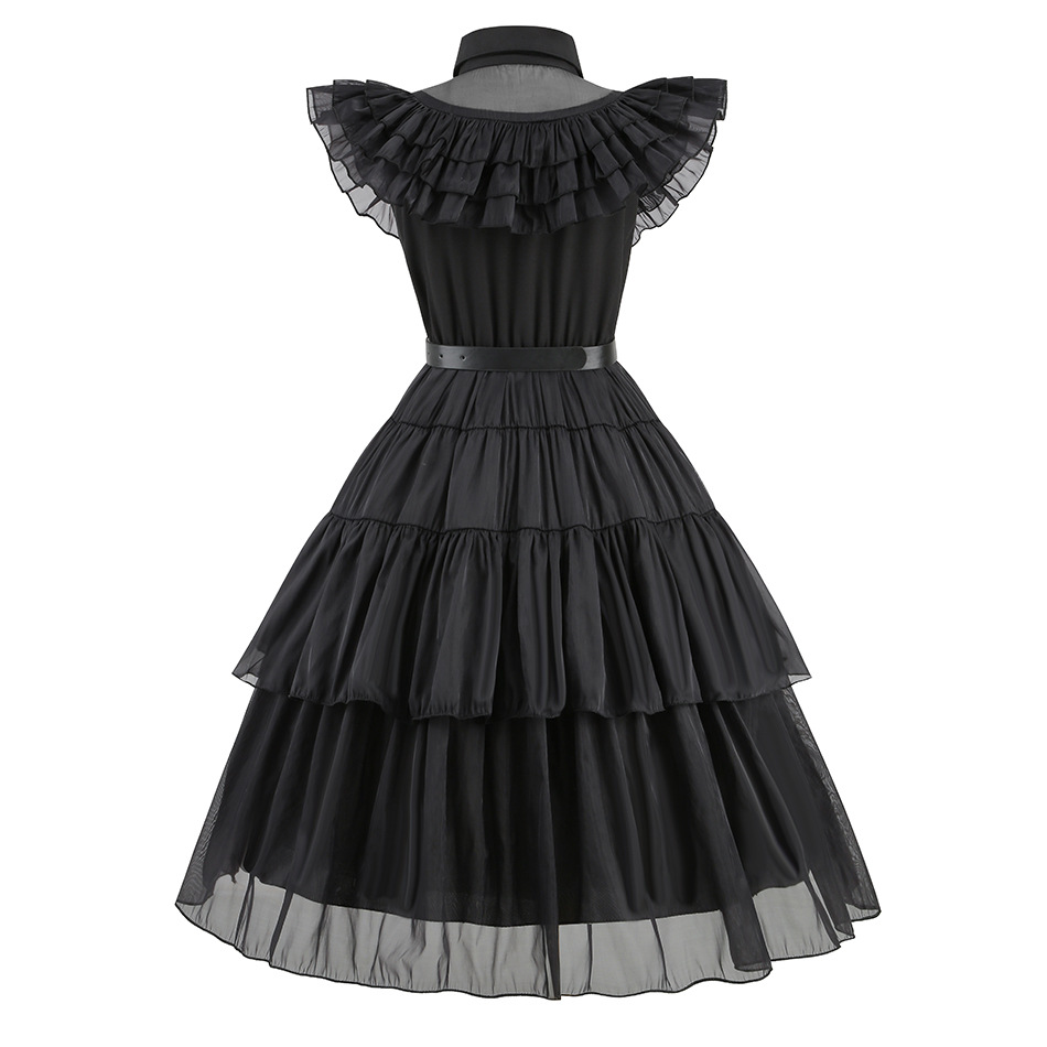 В среду, Adams COS Одежда для детской вечеринки, Черное Шифоновое Платье Адамса, цельная доставка
