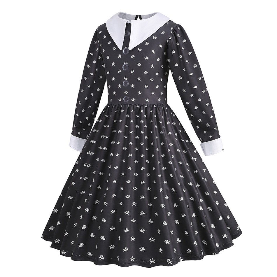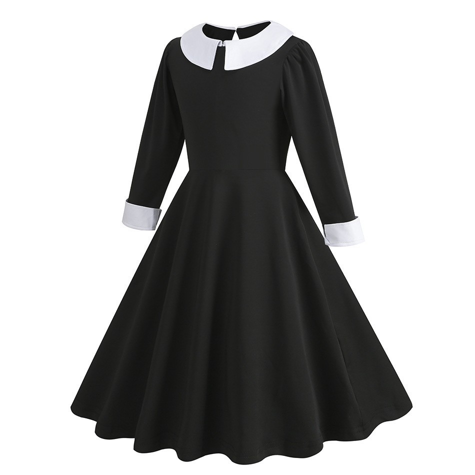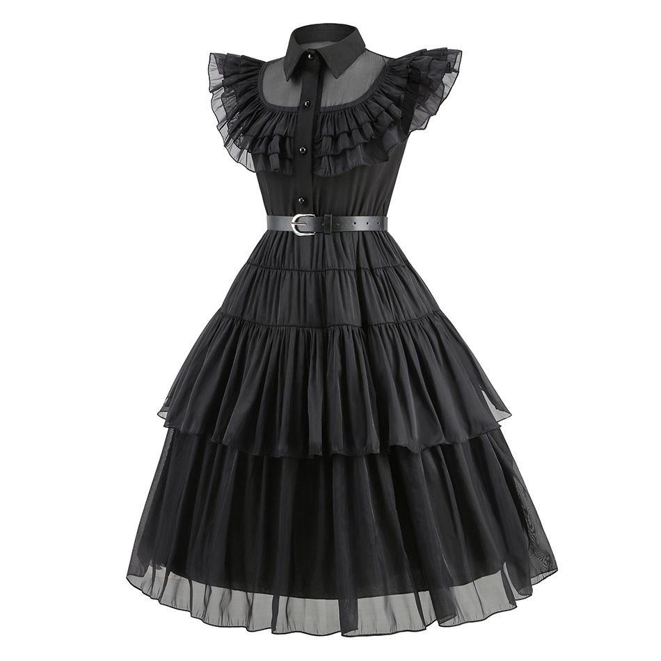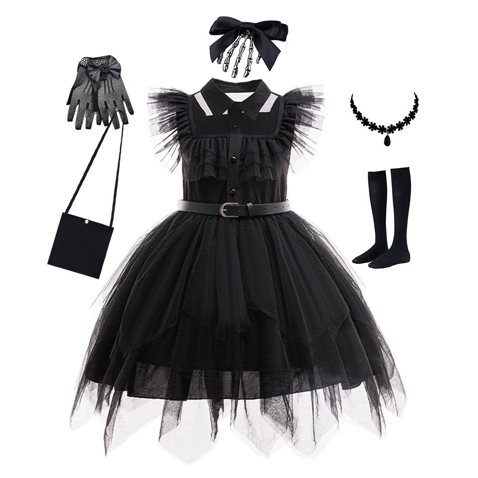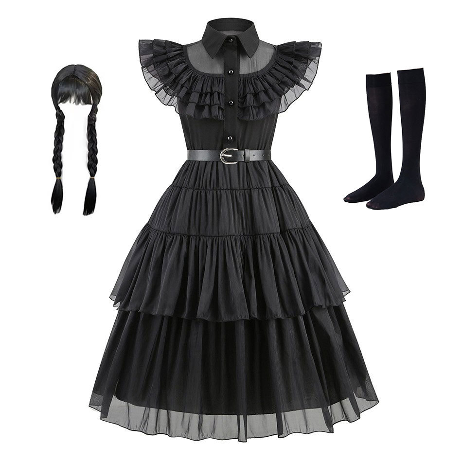 В среду, Adams COS Одежда для детской вечеринки, Черное Шифоновое Платье Адамса, цельная доставка