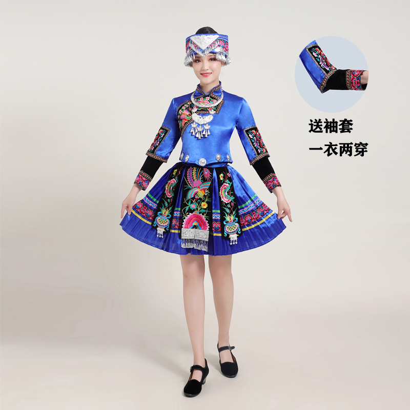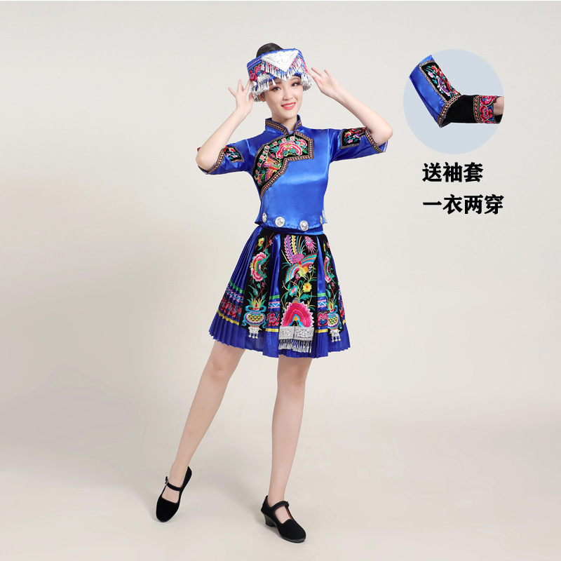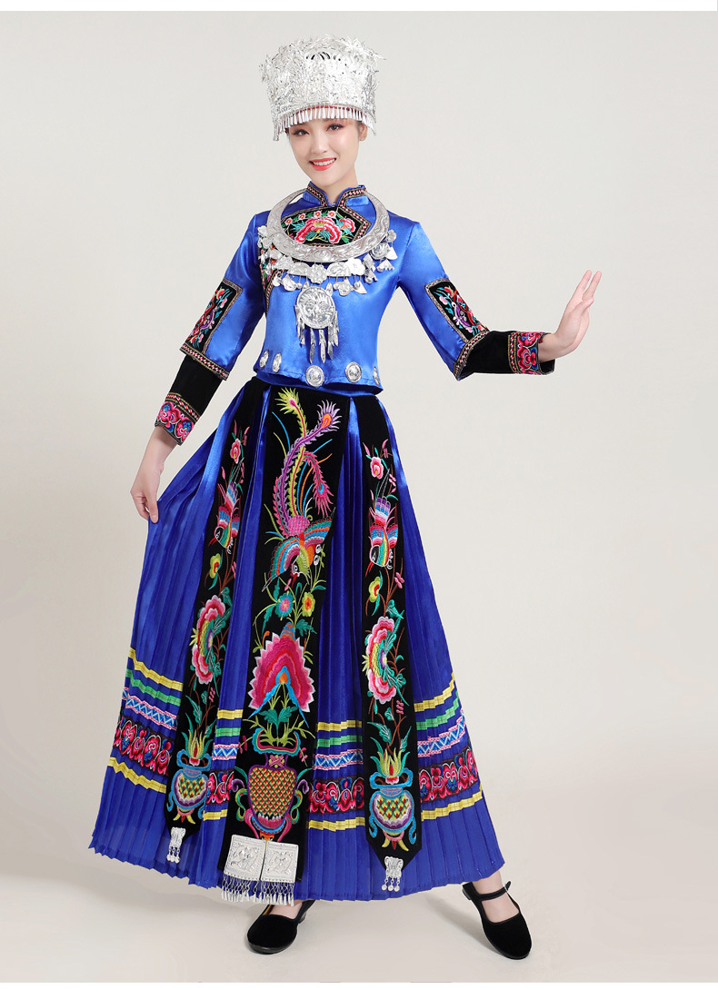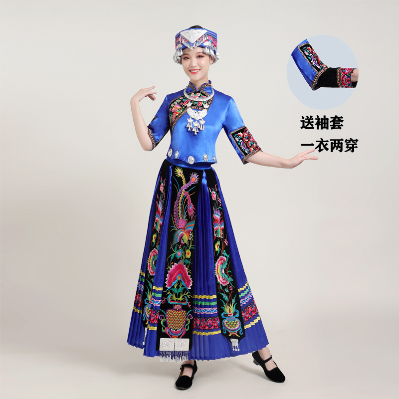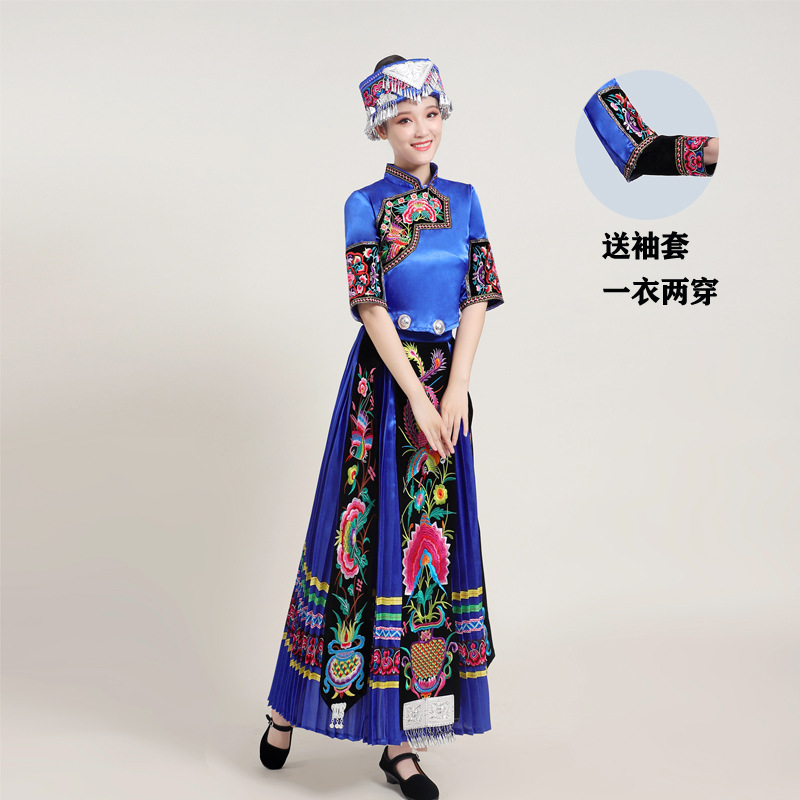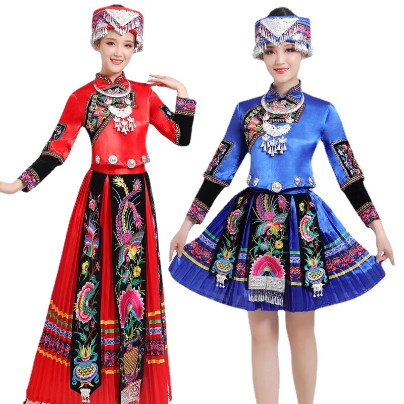 Костюмы этнических меньшинств Женские костюмы для выступлений Мяо с вышивкой Yi Zhuang Tujia Yao Костюмы для танцевальных выступлений