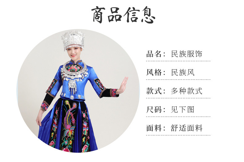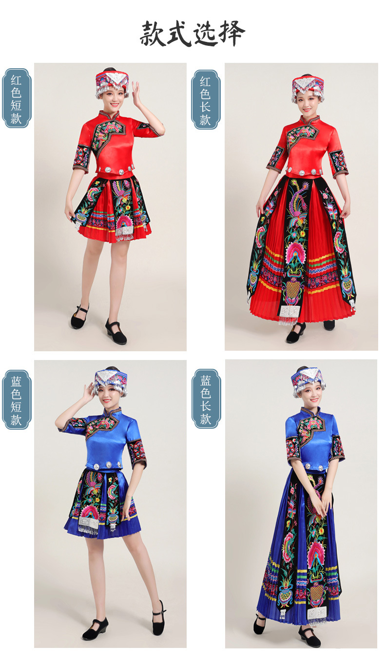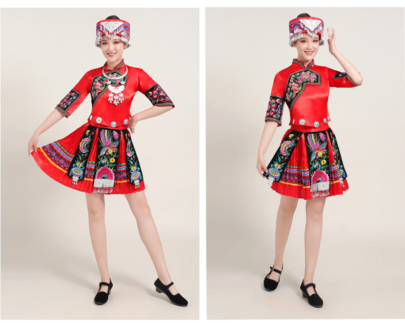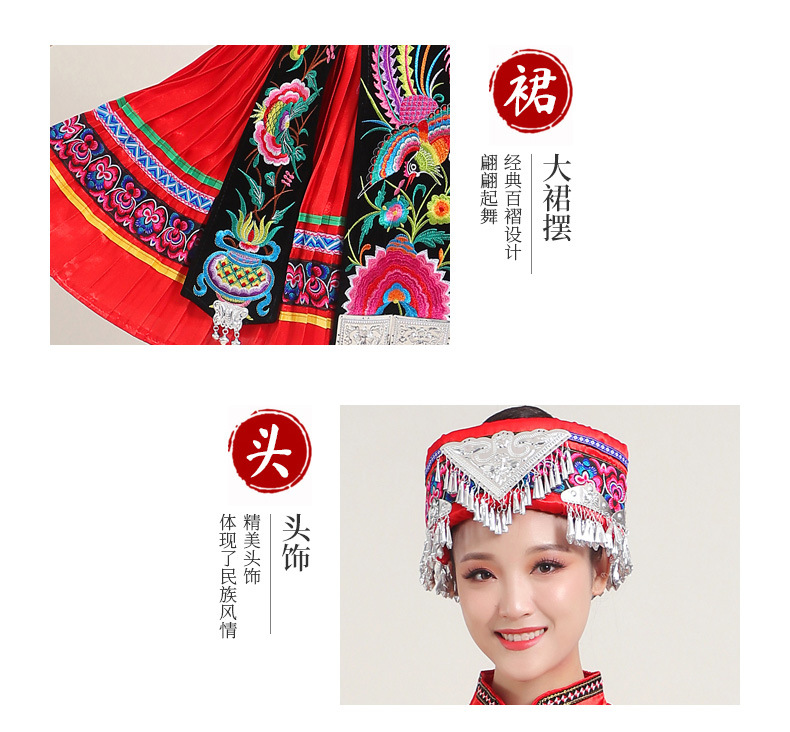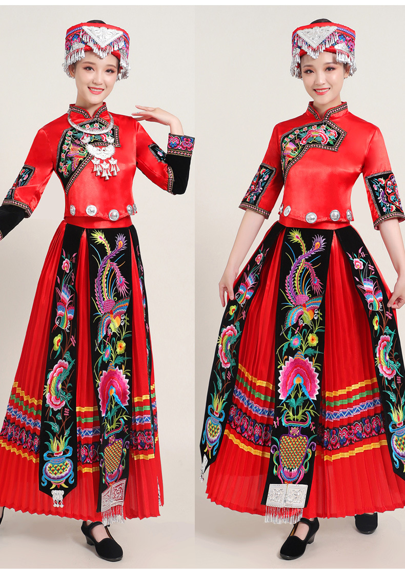 Костюмы этнических меньшинств Женские костюмы для выступлений Мяо с вышивкой Yi Zhuang Tujia Yao Костюмы для танцевальных выступлений
