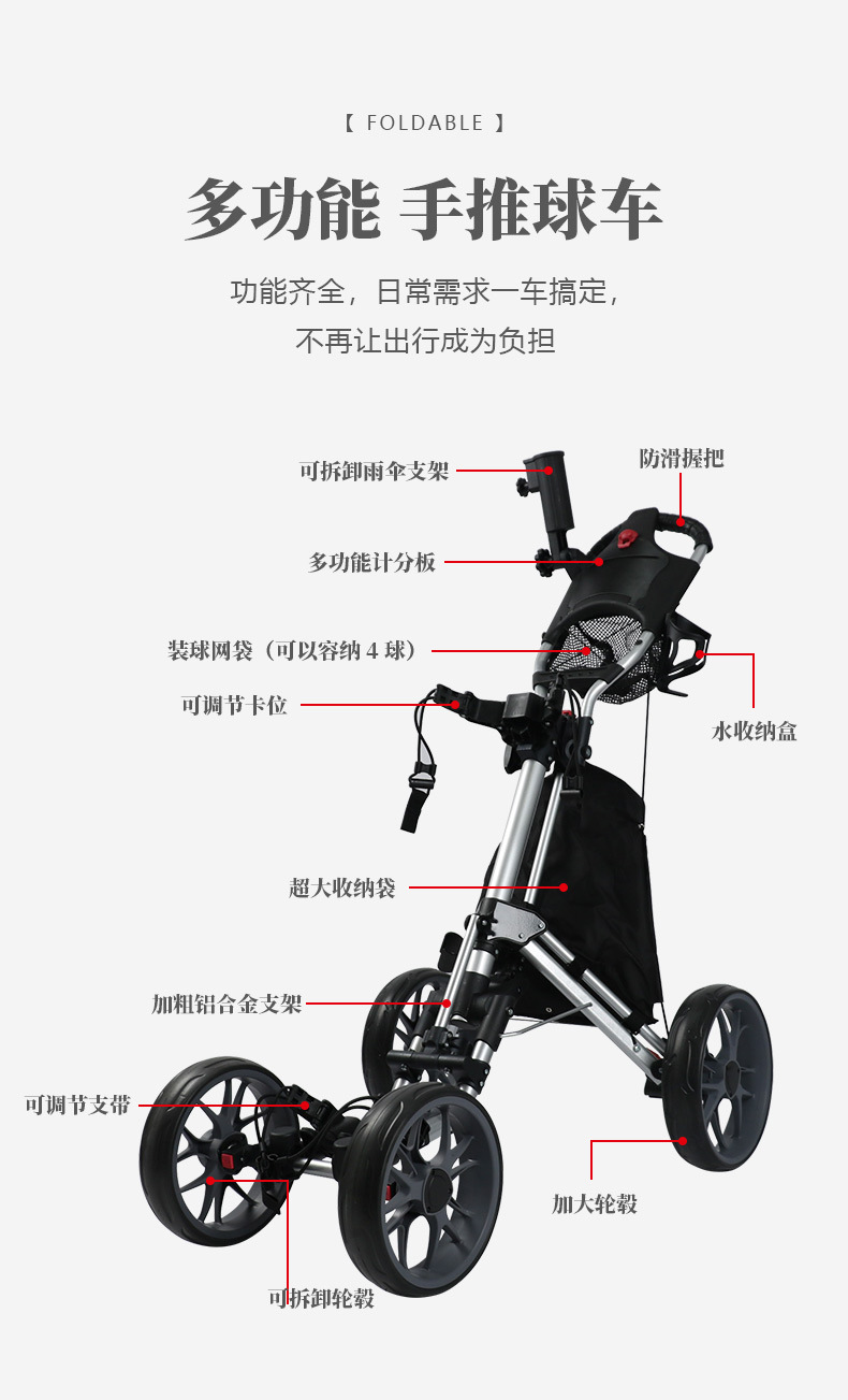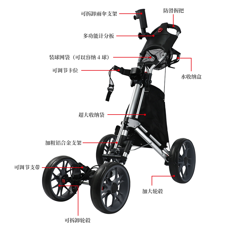 Гольф четырехколесная тележка для гольфа тележка Молодежная игровая тележка складная с тормозом стойка для чайника тележка для мячей