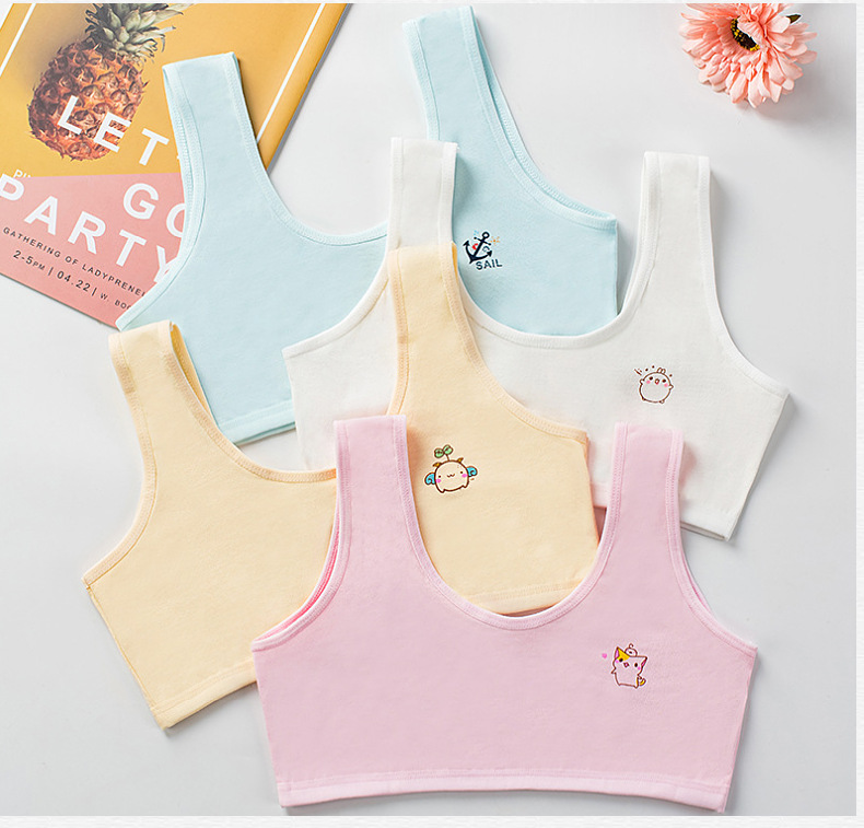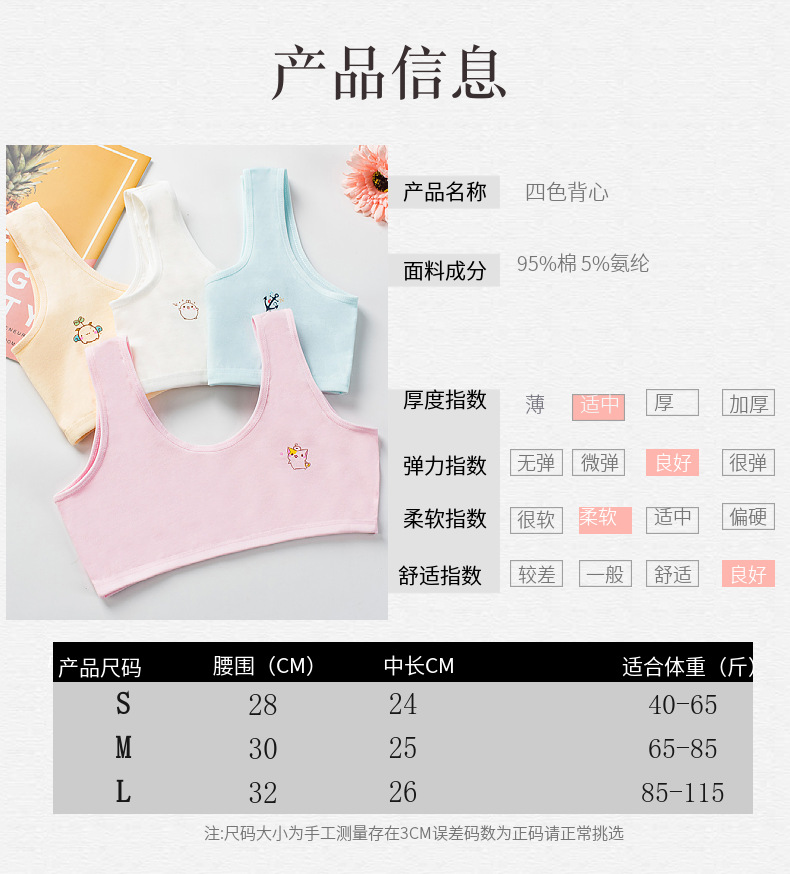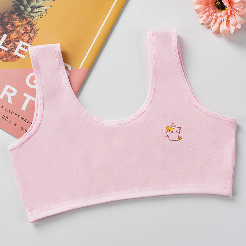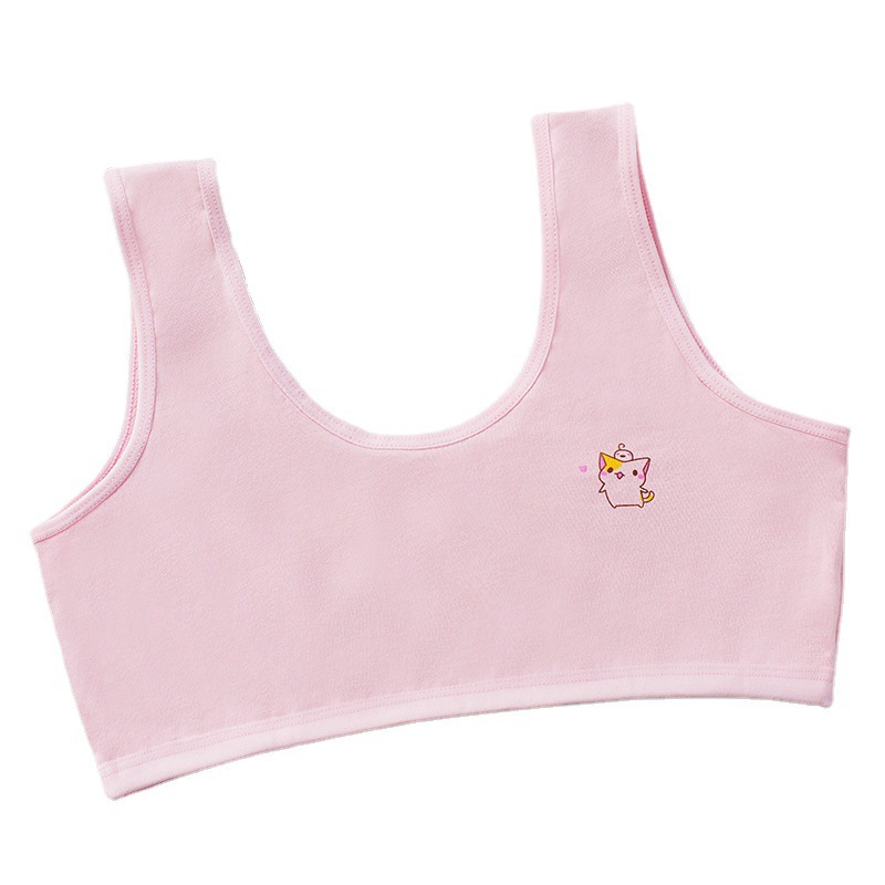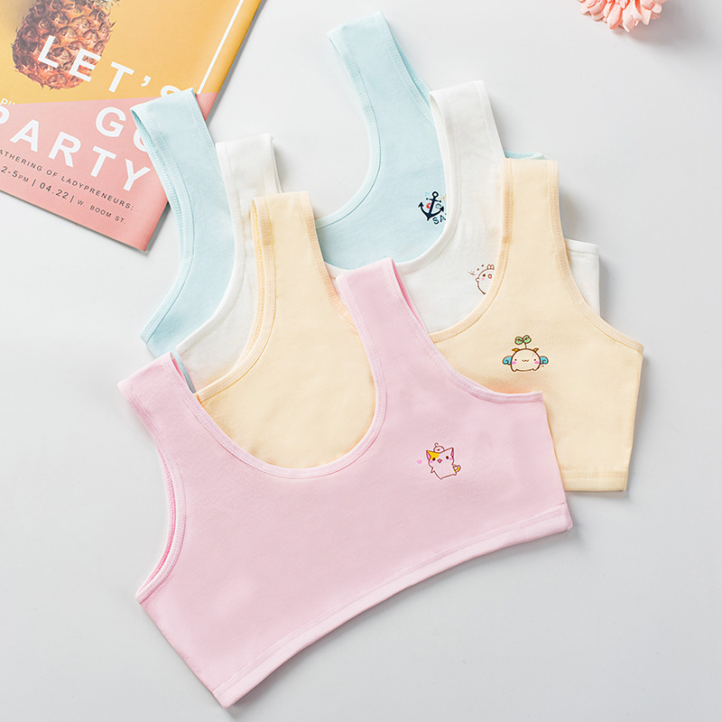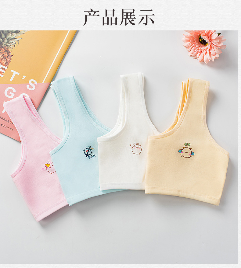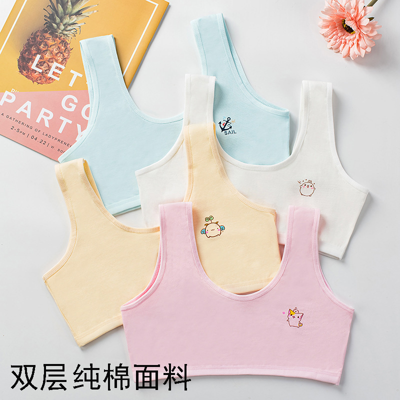 [В наличии и быстрая доставка] Двухслойное хлопковое четырехцветное развивающее нижнее белье для девочек, удобный маленький жилет с мультяшным принтом
