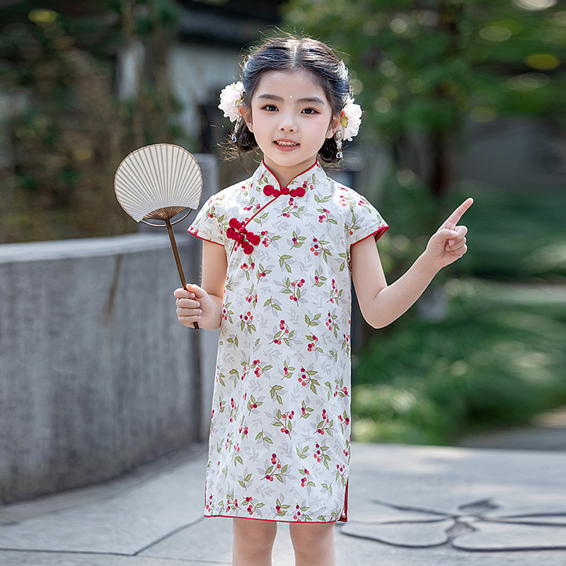 Девушка с короткими рукавами юбка чонсам 25 лет лето новое детское платье в китайском стиле ретро детское Hanfu сеть Red Fairy