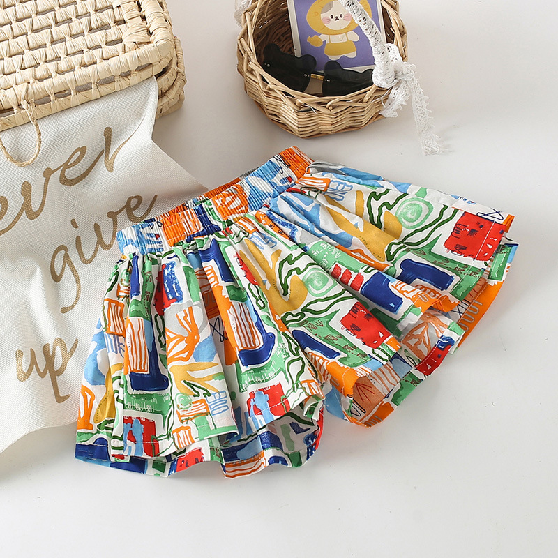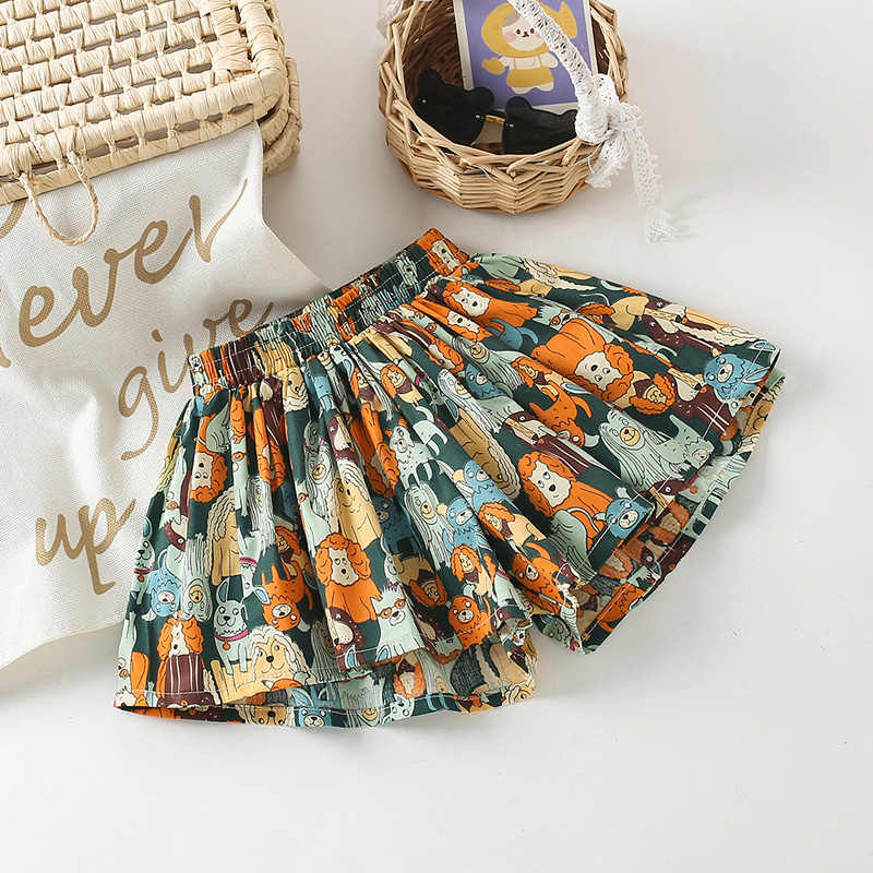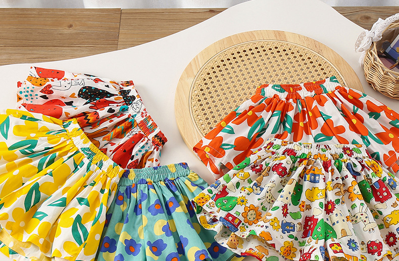 Юбка для девочек короткие брюки Детские шорты хлопчатобумажные летние шорты с цветочным принтом 2025