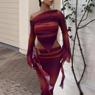 Женская одежда в европейском и американском стиле 2024 новая летняя мода сексуальная индивидуальная обертка нерегулярное платье для внешней торговли оптом