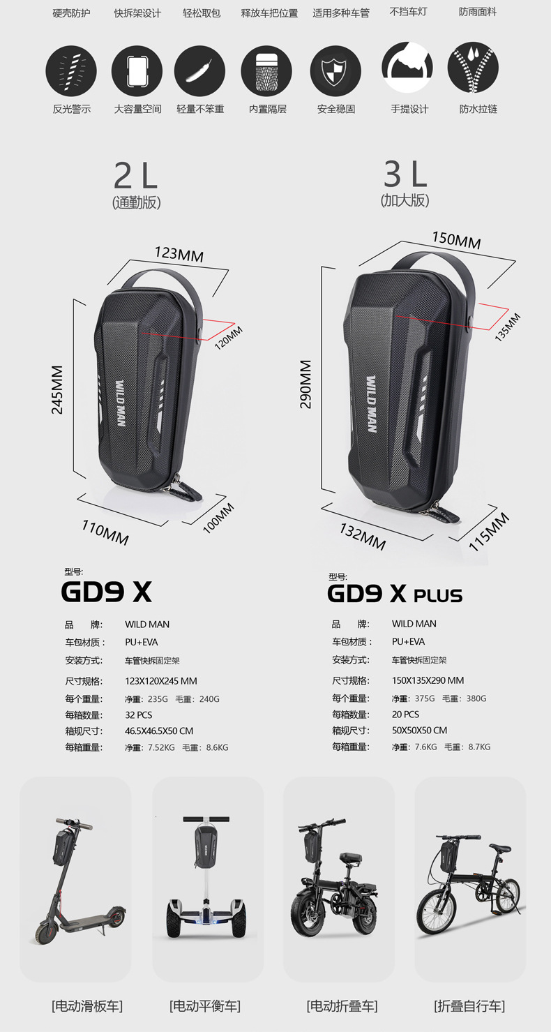 WILD MAN электрический скутер EVA твердая оболочка быстросъемная сумка на голову складная сумка на голову для электрического велосипеда
