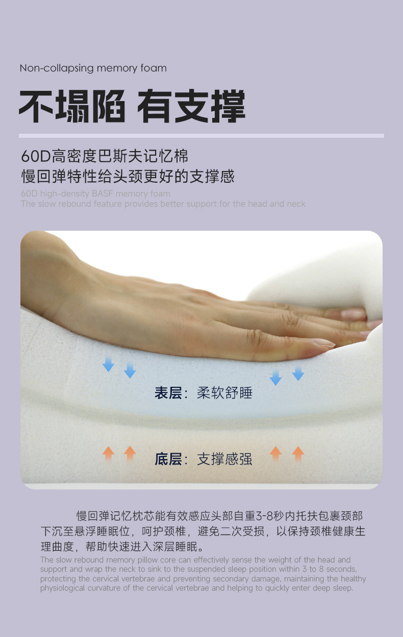 Ортопедическая подушка из пены с эффектом памяти высокой плотности, класс А, для сна, не сминается, для защиты шеи, оптом