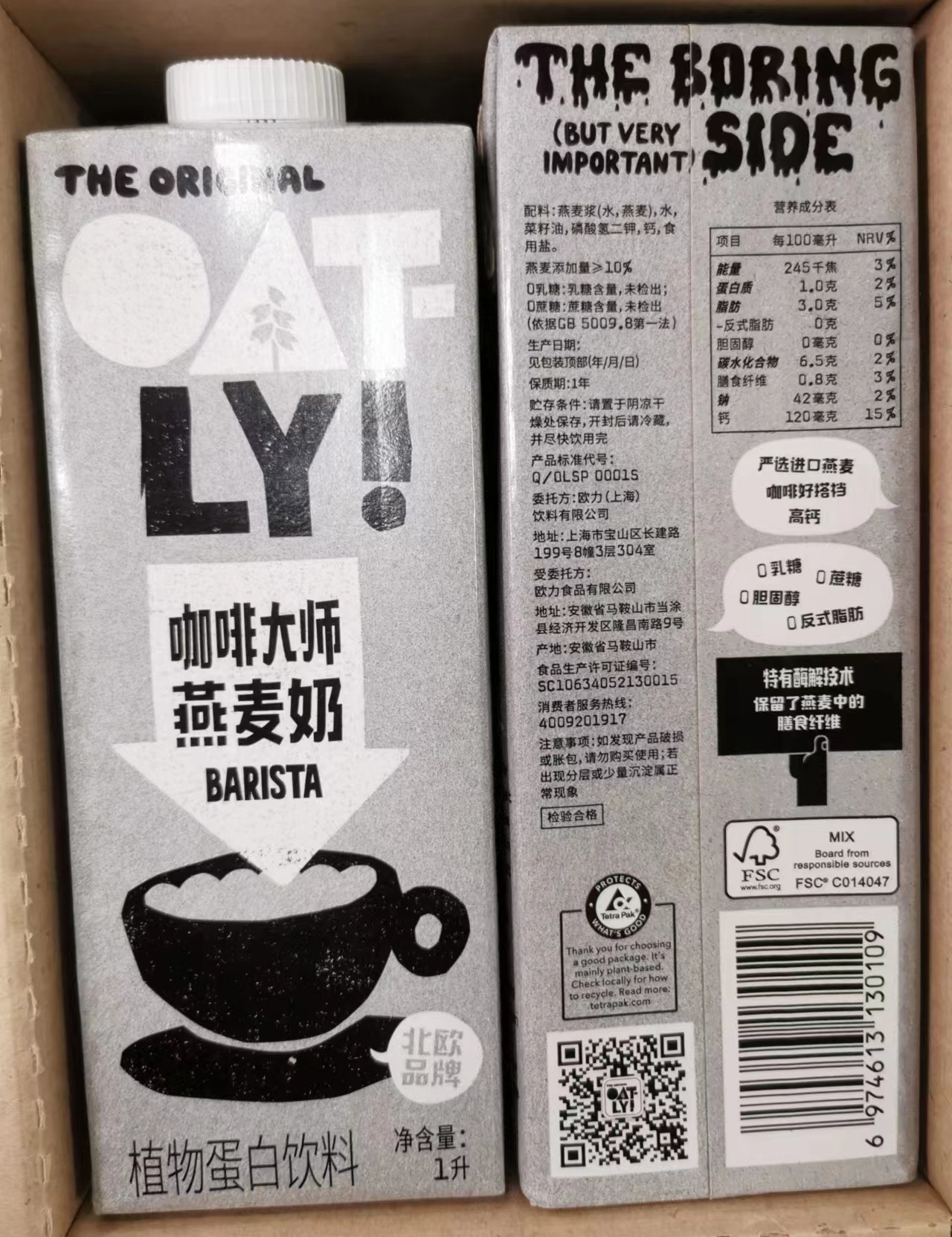 Кофе-молоко OATLY Oat Milk 1л x 6 шт. (целая коробка) для приготовления кофе, оригинальный вкус, добавка для чая с молоком