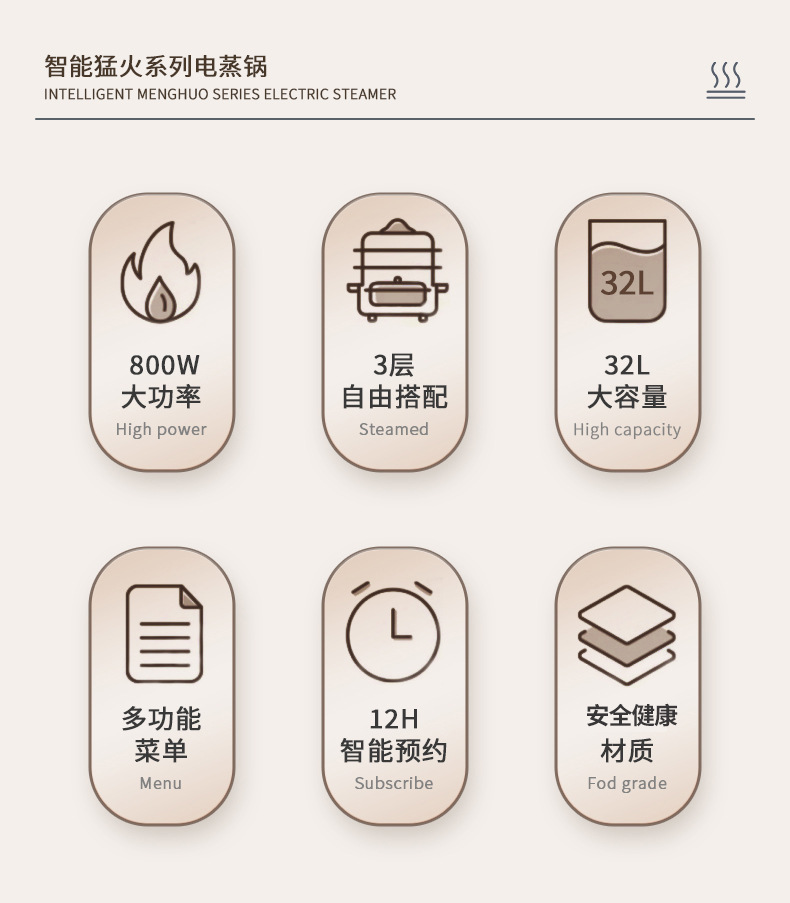 Приготовление на пару, варка, жарка, тушение, горячий горшок, резервирование, таймер, приготовление без высыхания