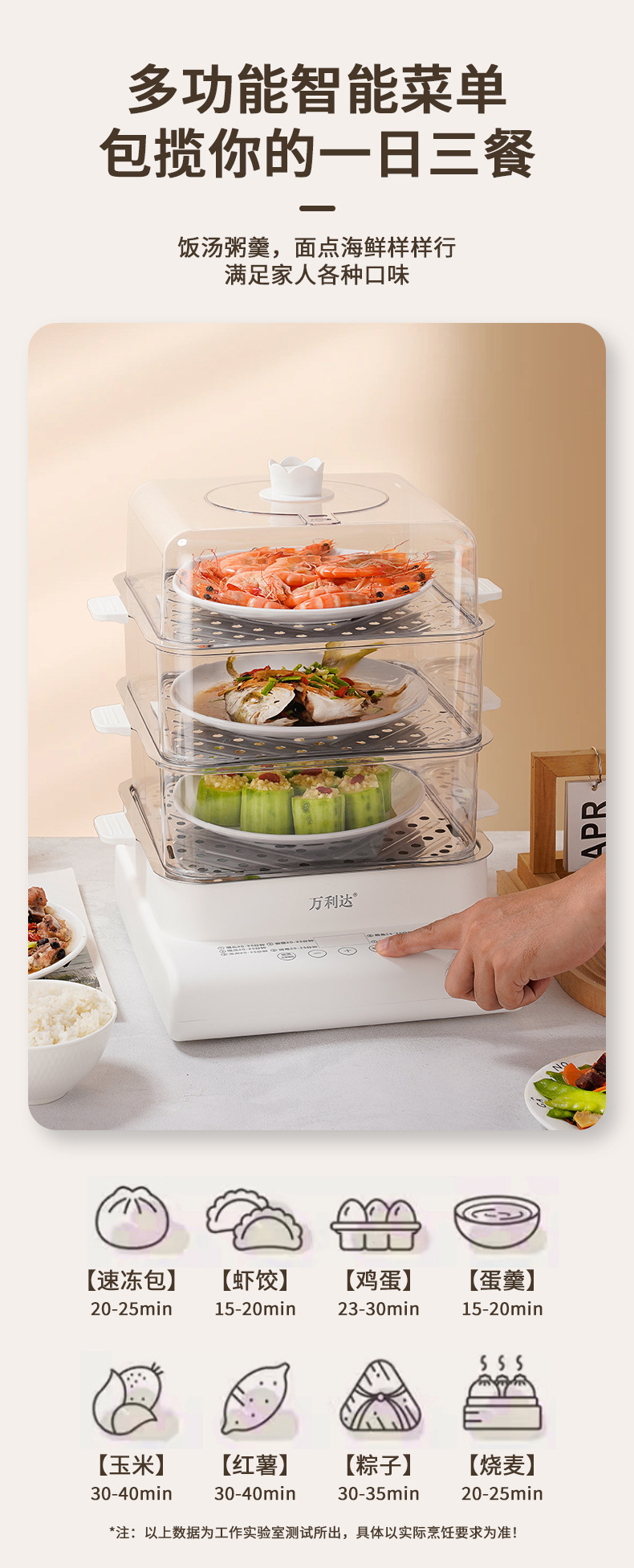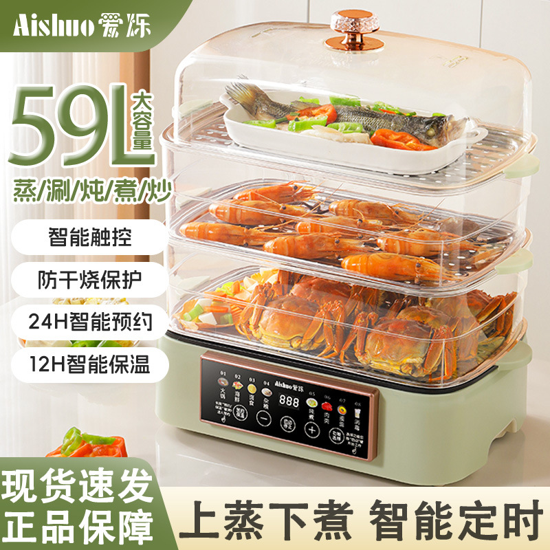 Бытовая многофункциональная электрическая пароварка большой емкости Wanlida, модернизированная модель для приготовления пищи, 6 больших сенсорных кнопок, 12 больших функций