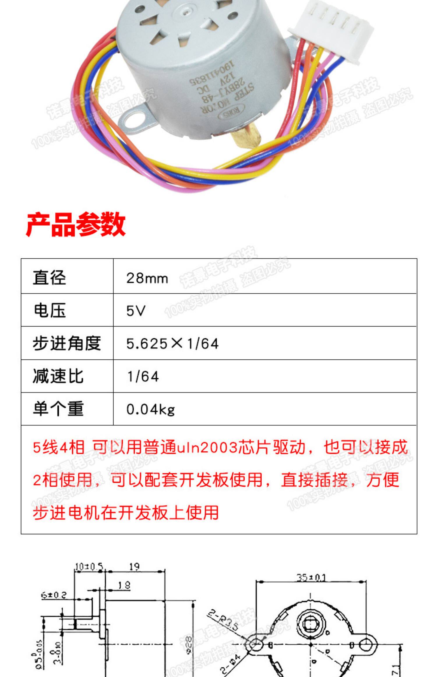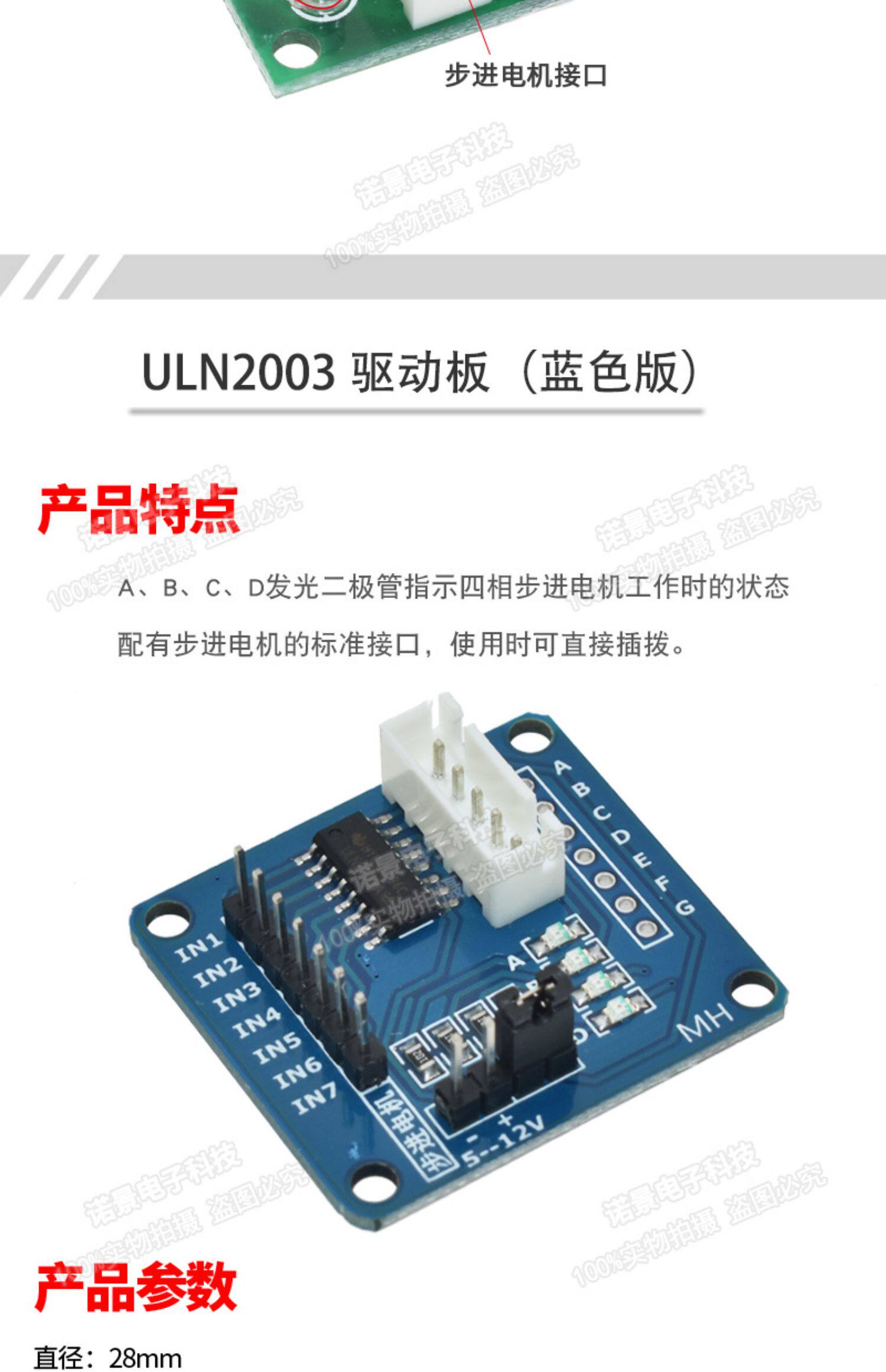 Плата драйвера шагового двигателя 28BYJ4 + ULN2003, 4-фазный 5-проводной модуль редуктора шагового двигателя 5V12V