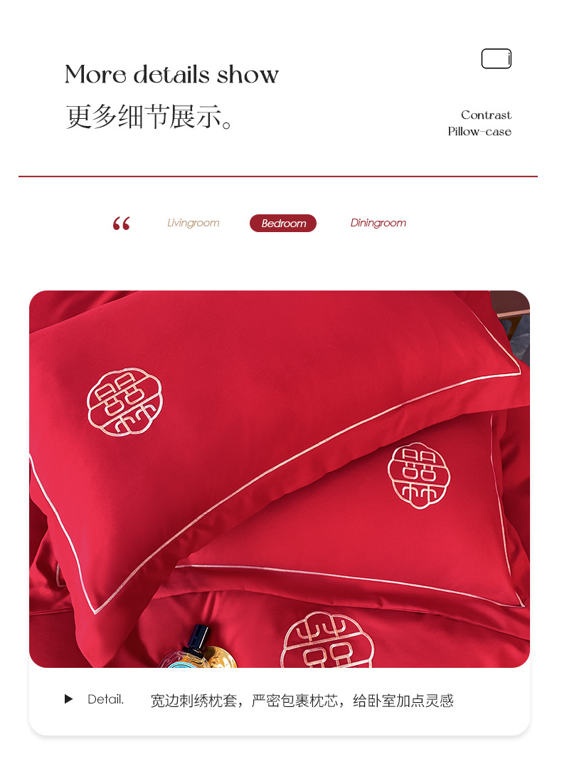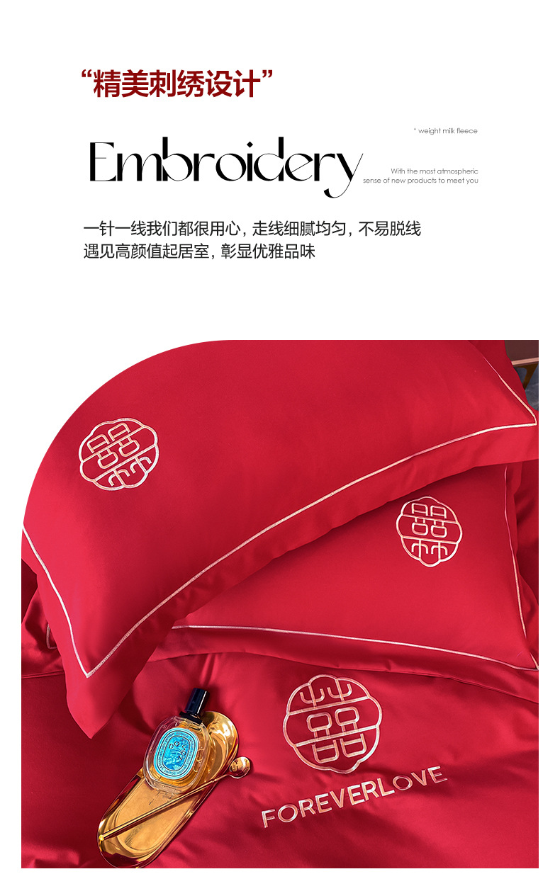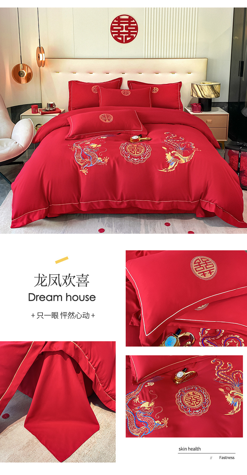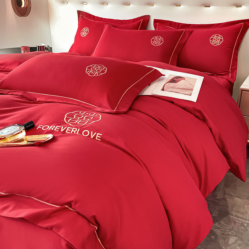 Свадебный праздничный комплект из четырех предметов из промытого хлопка, китайская ярко-красная простыня, Высококачественная вышитая пододеяльник, постельное белье для свадебной комнаты